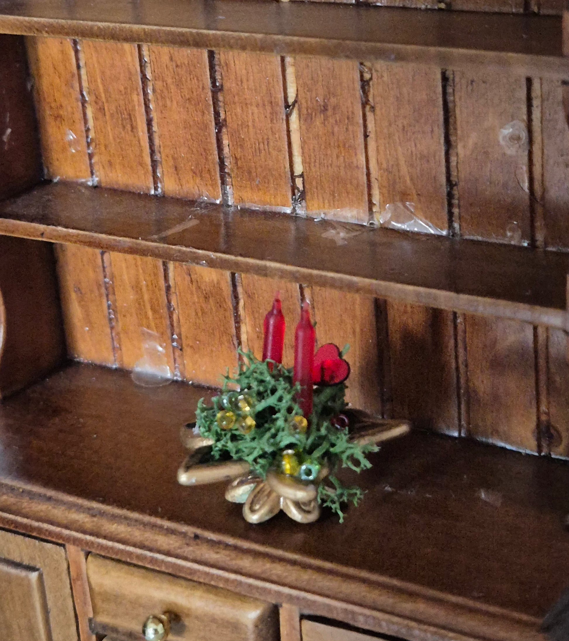 Pæn juledekoration med 2 røde lys. Hjemmelavet.
