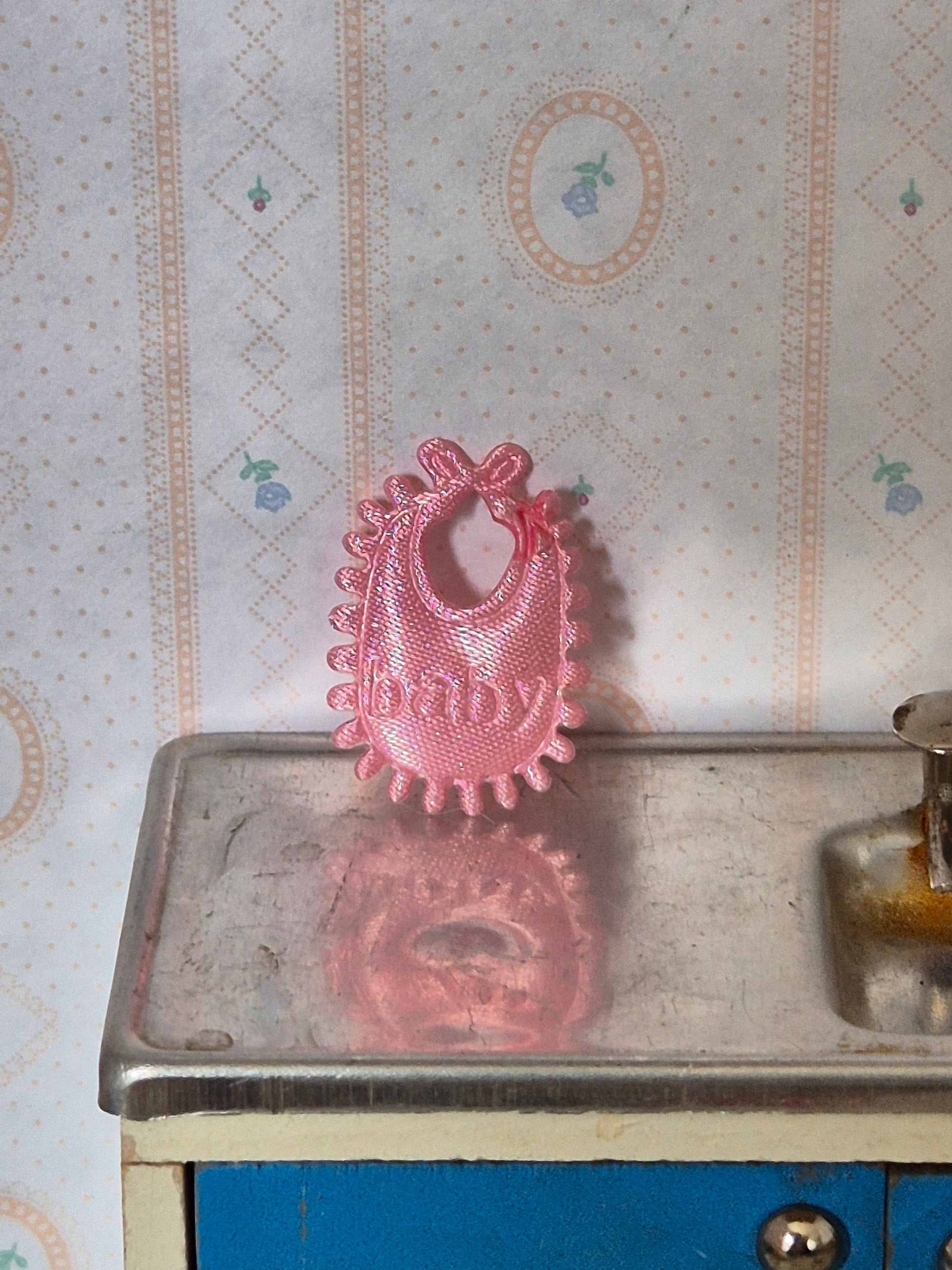Pæn lyserød hagesmæk til babyen. Udmærket fin stand.