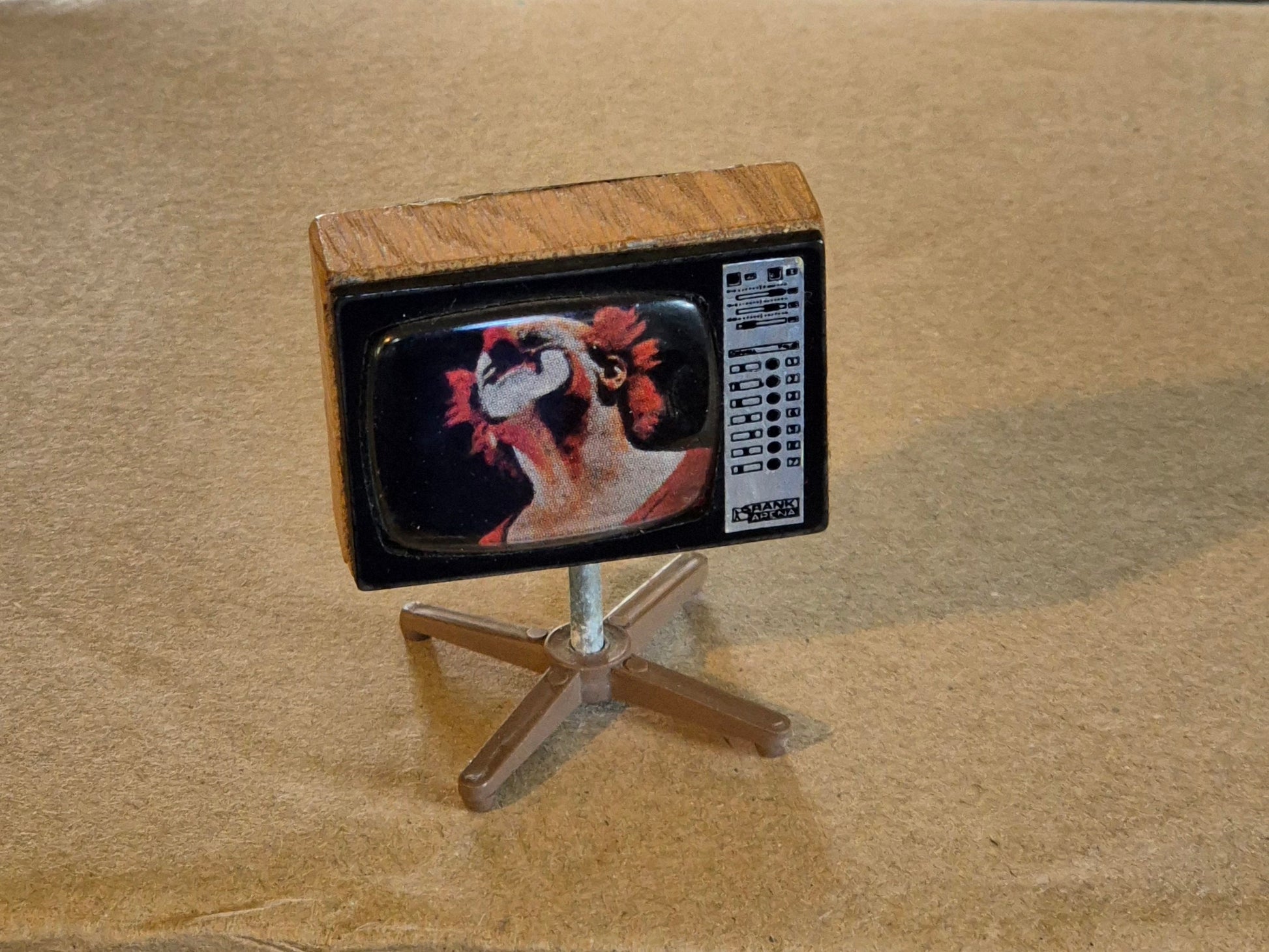 Klovne TV af plast og metal af Lisa af Danmark. Virkelig god stand.