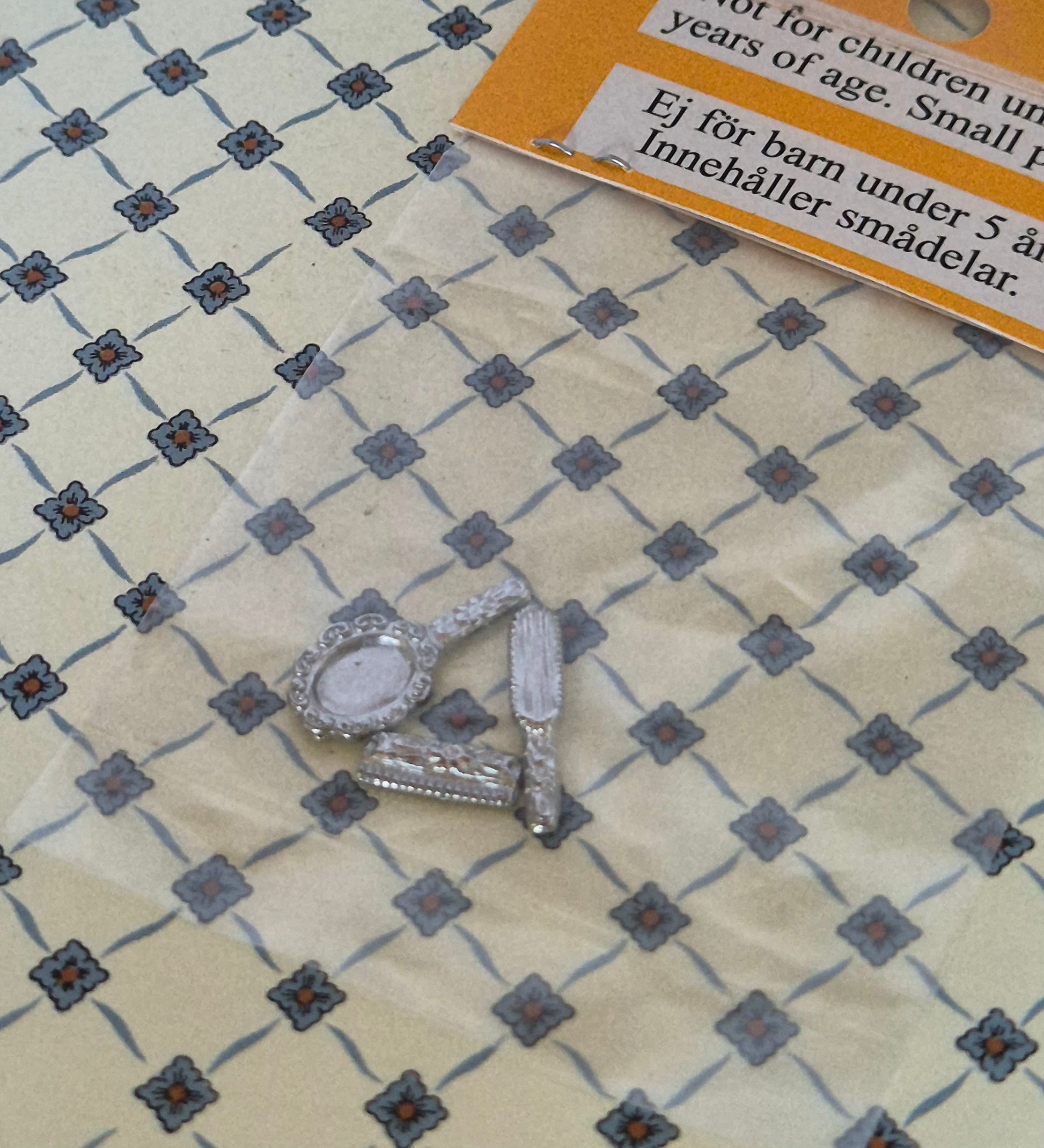 Pænt nyt sæt, hårbørste, kam og håndspejl.