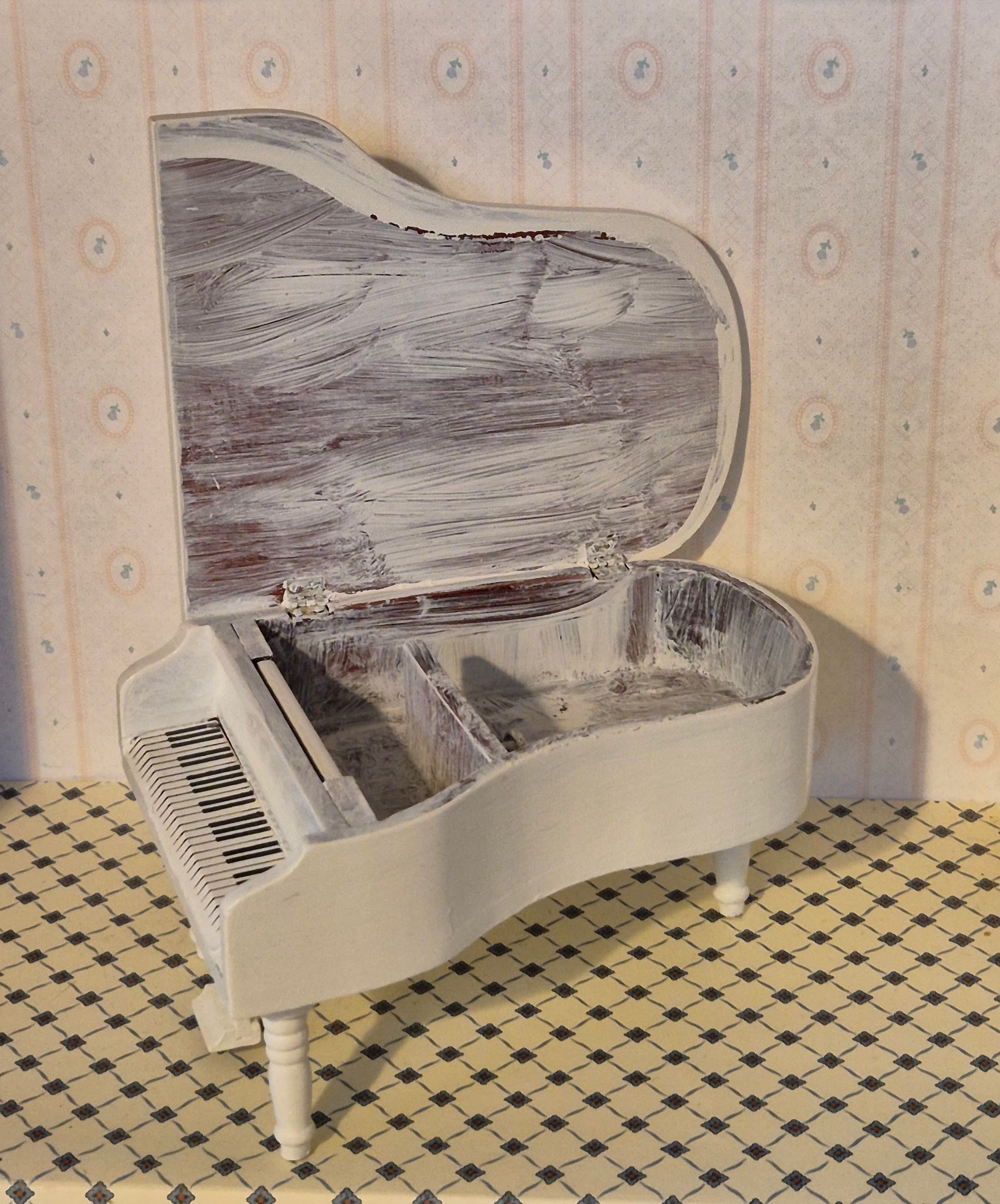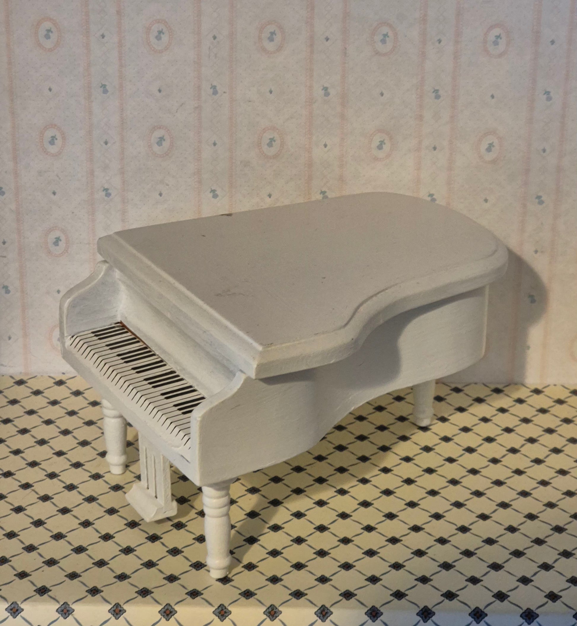 Pænt 1:12 piano, der er malet hvidt / renoveret.
