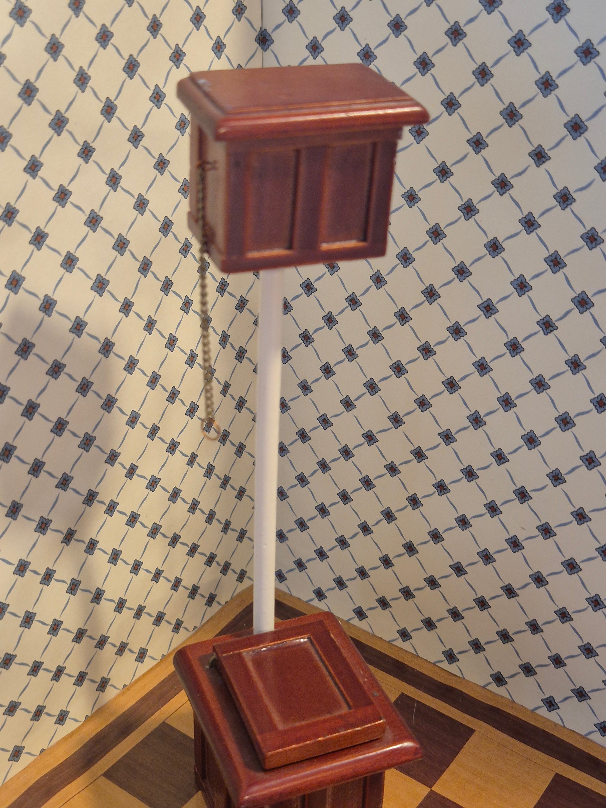 1:12 i hvid og brun træ med brugsspor, det er 18,2 cm højt.