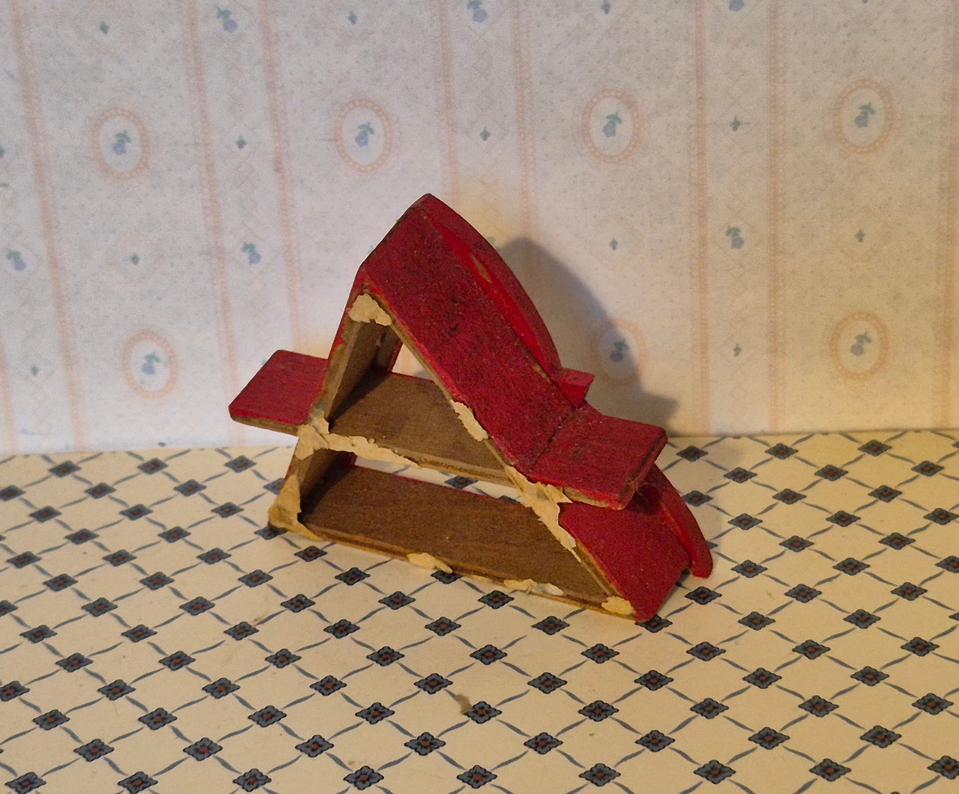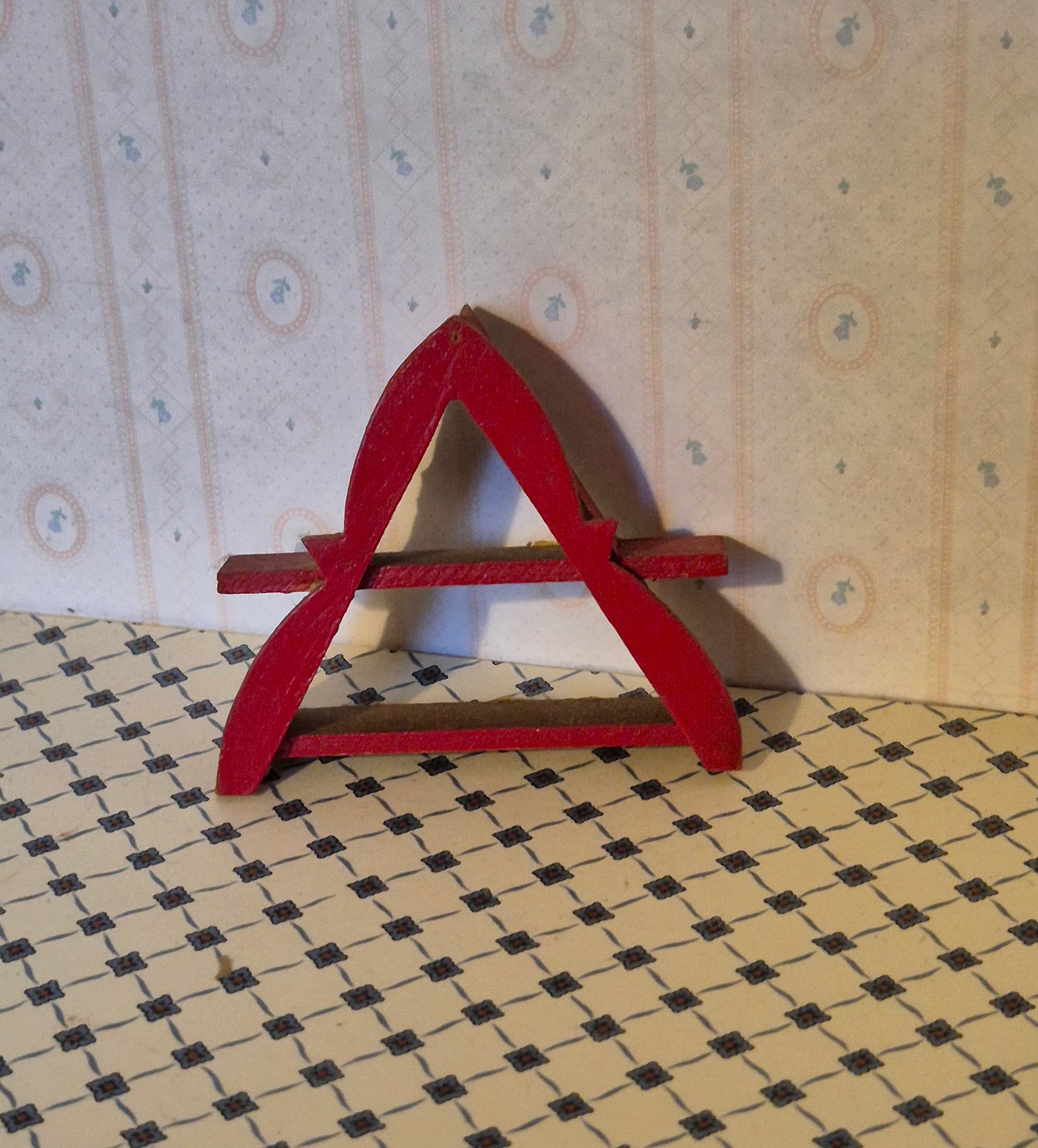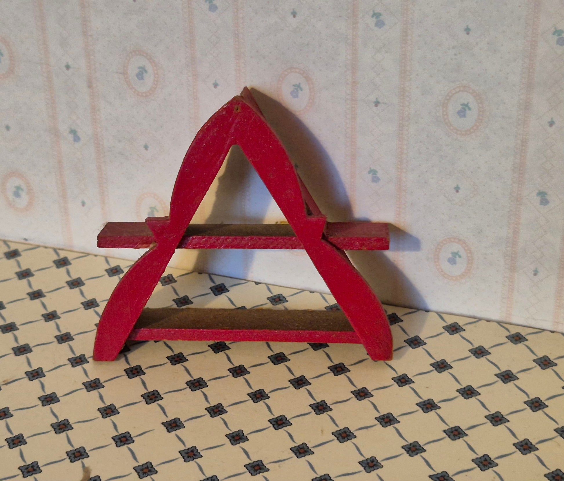 Pæn vintage hylde, kaldes på dansk Amagerhylde. Den er af træ og malet rød.