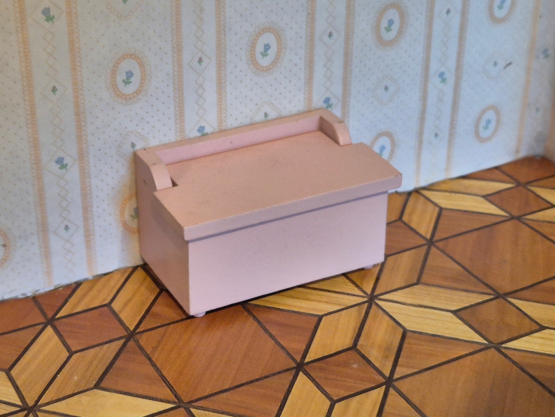 Fin lyserød kiste i god stand til fx opbevaring af bl.a legetøj i dukkehus.
