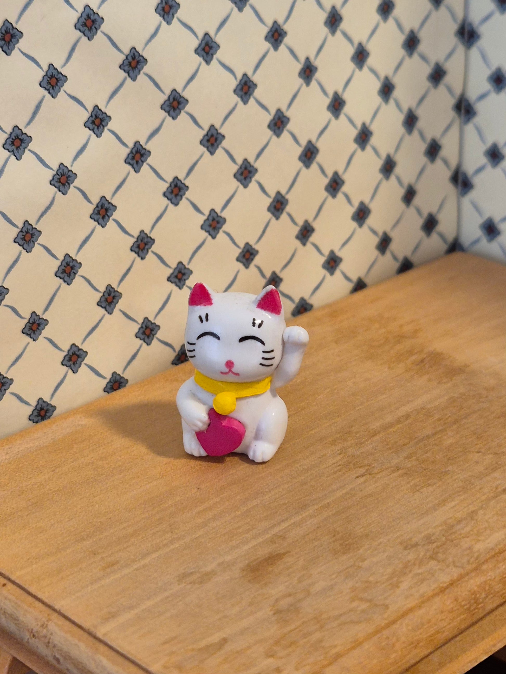 Pæn legetøjsfigur lykkekat. Den er ca 2,7 cm høj.