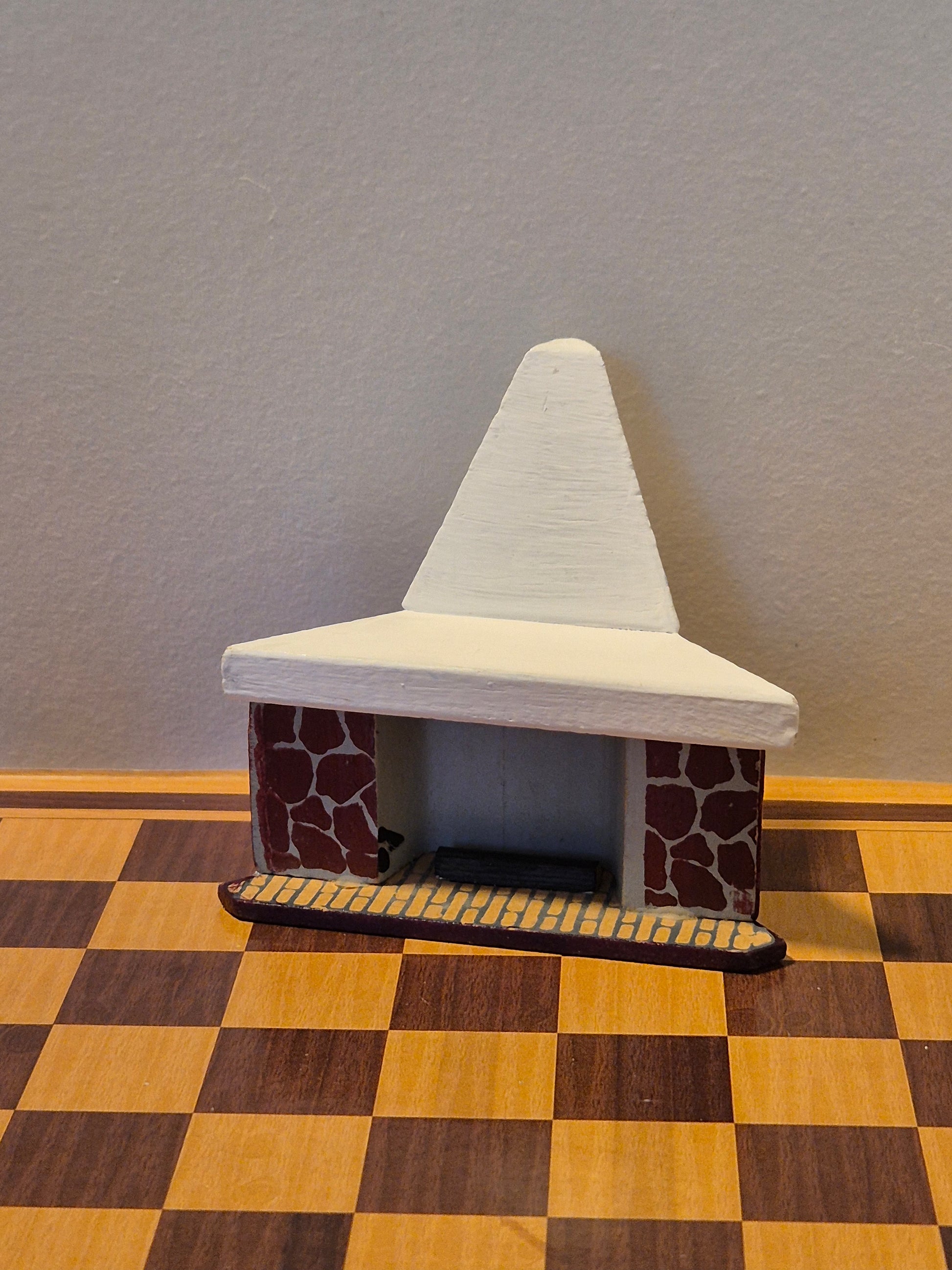 Vintage hjørnepejs af træ, hvor brændestak mangler, af mærket Lisa af Danmark.