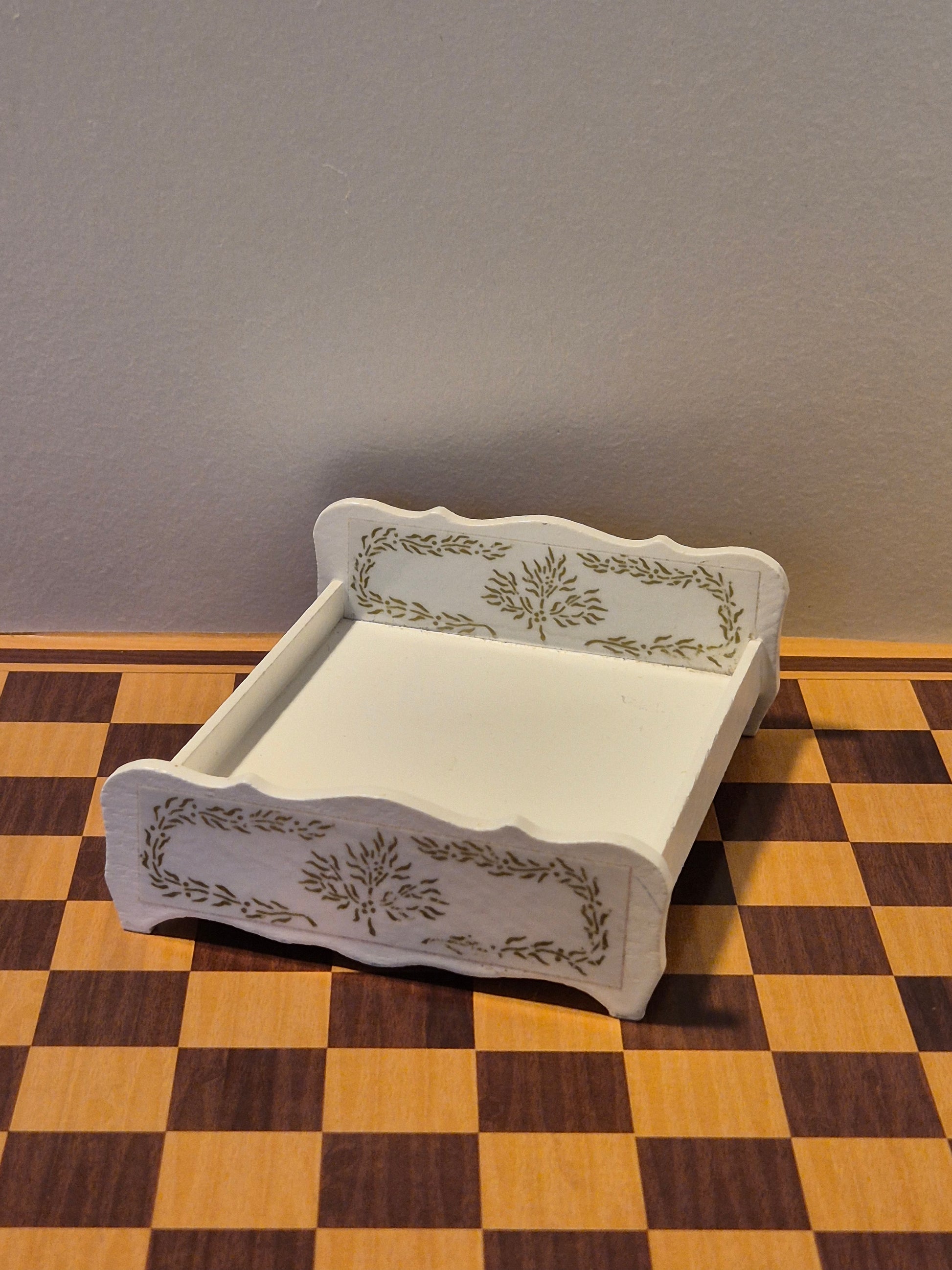 Pæn seng i hvid træ med pæne udskæringer i rokoko stil af mærket Lisa af Danmark. Den er fra slutningen af 1960erne.