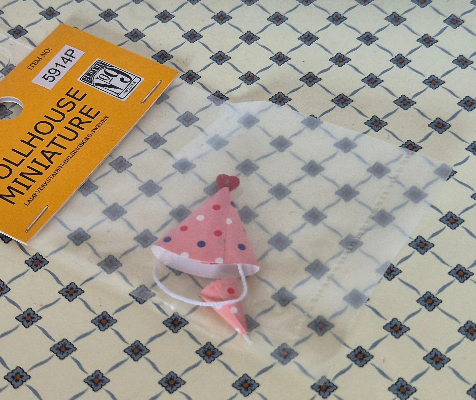 Pæne nye party hatte, lille og stor. Kan passe til 1:12 og 1:16.