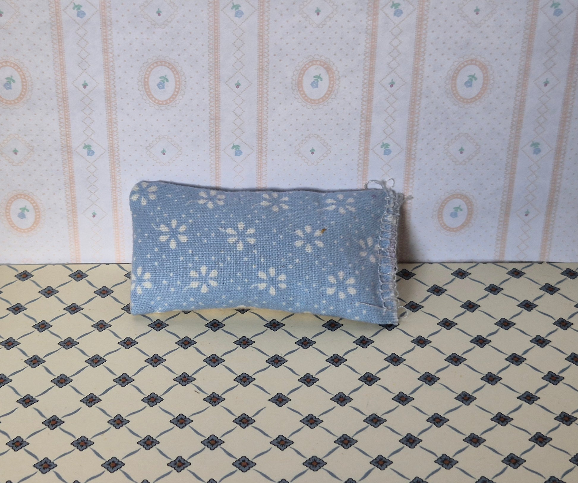 Hjemmelavet pude, stribet mønster på bagsiden.