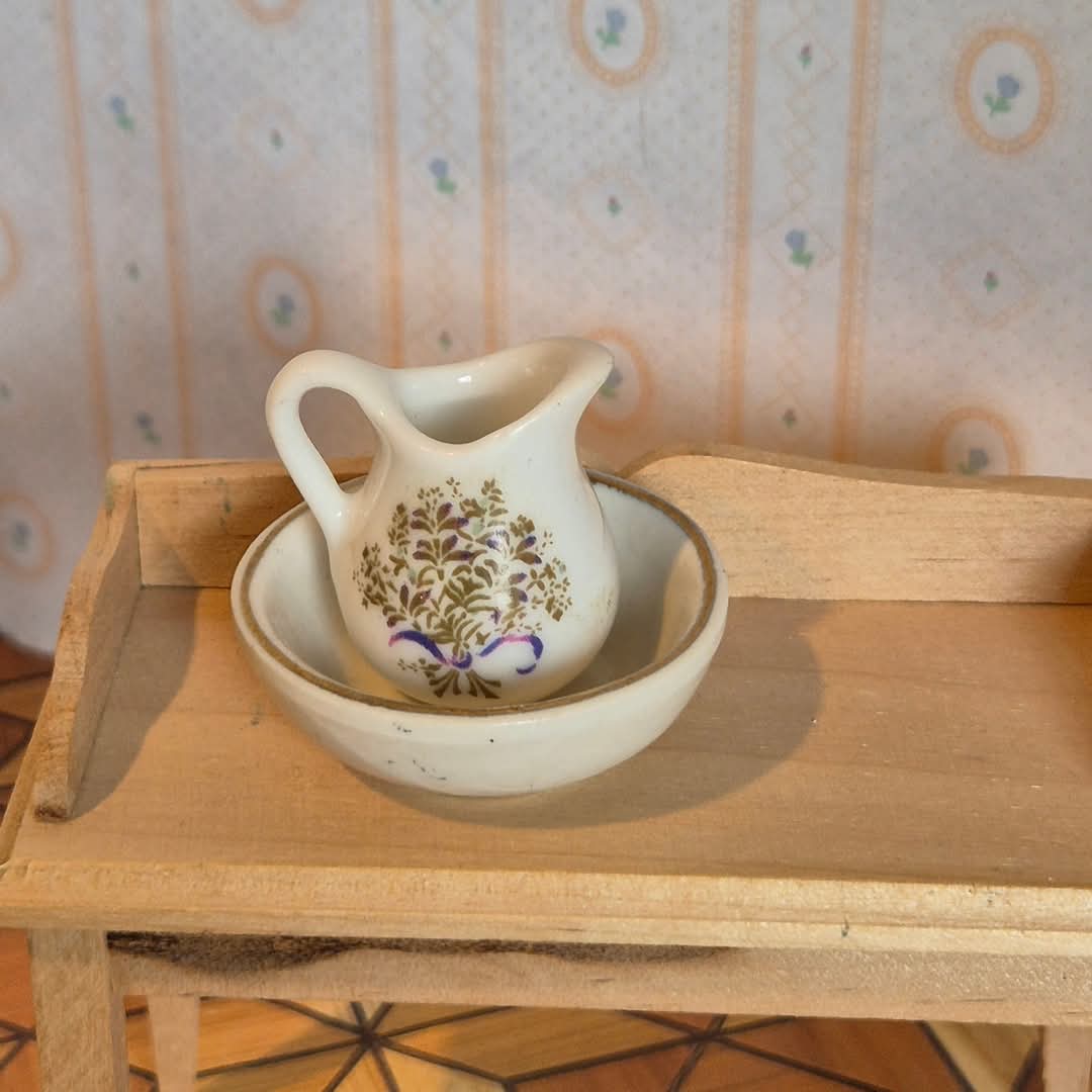 Pænt servante stel med guld motiv - det er hvidt porcelæn.