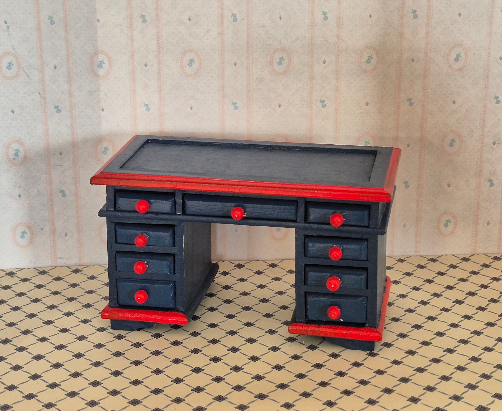 Pænt vintage skrivebord i 1:12 af designer Dora Kuhn fra Tyskland. God stand med patina.