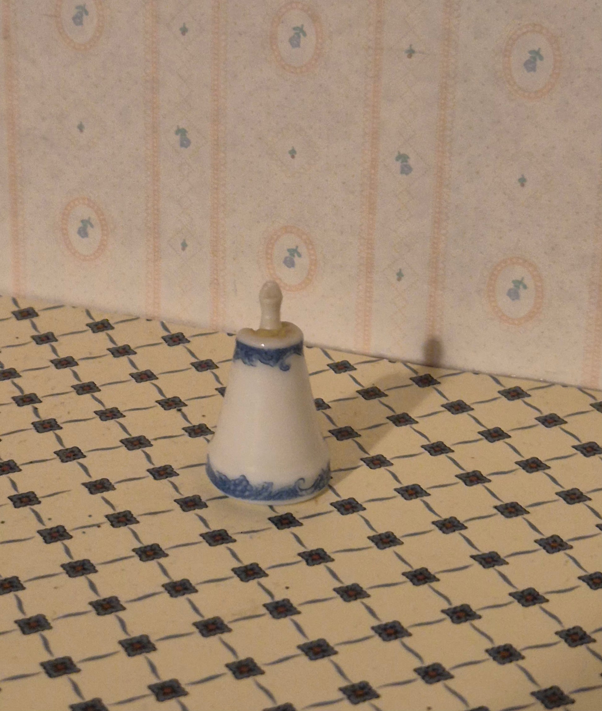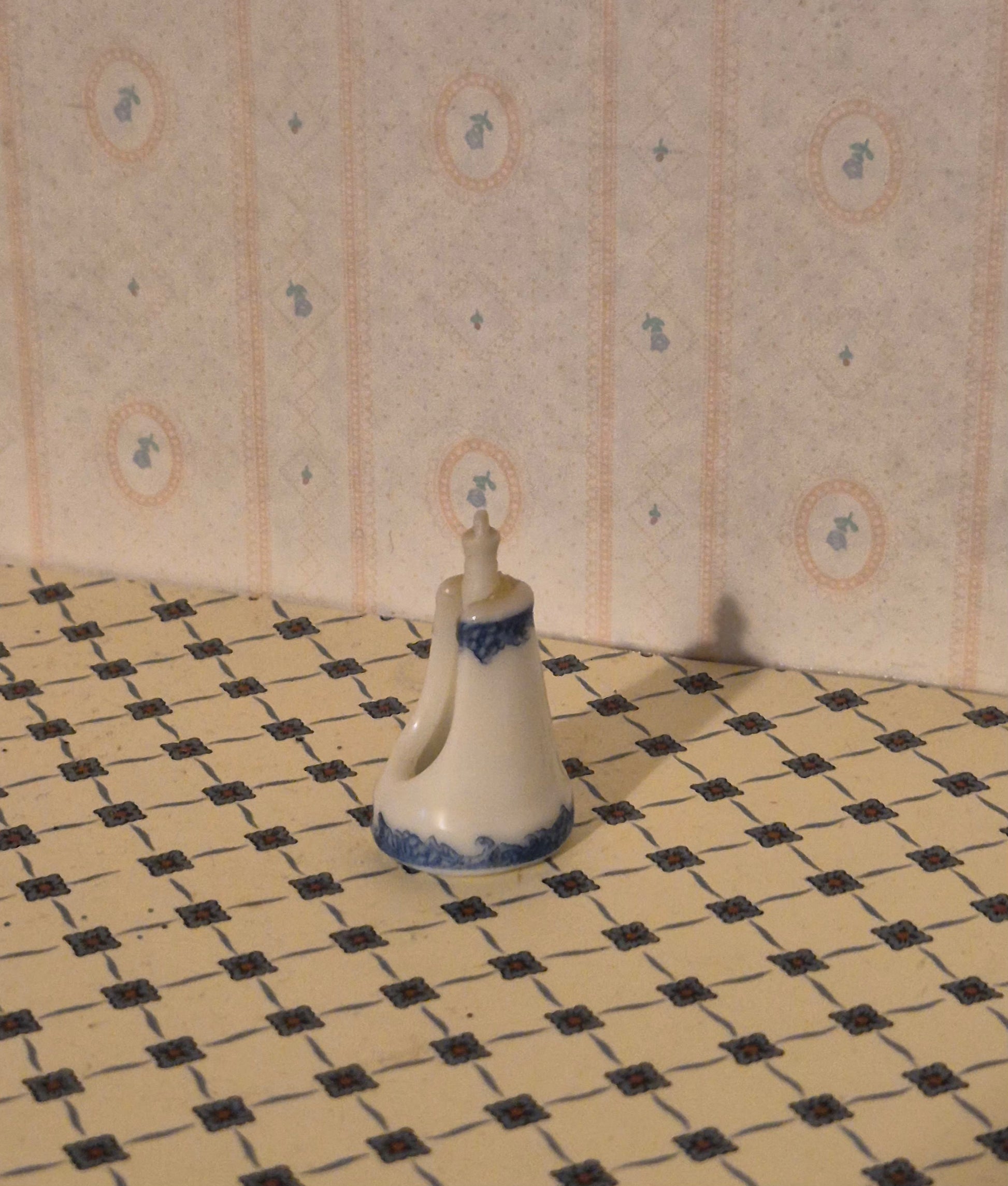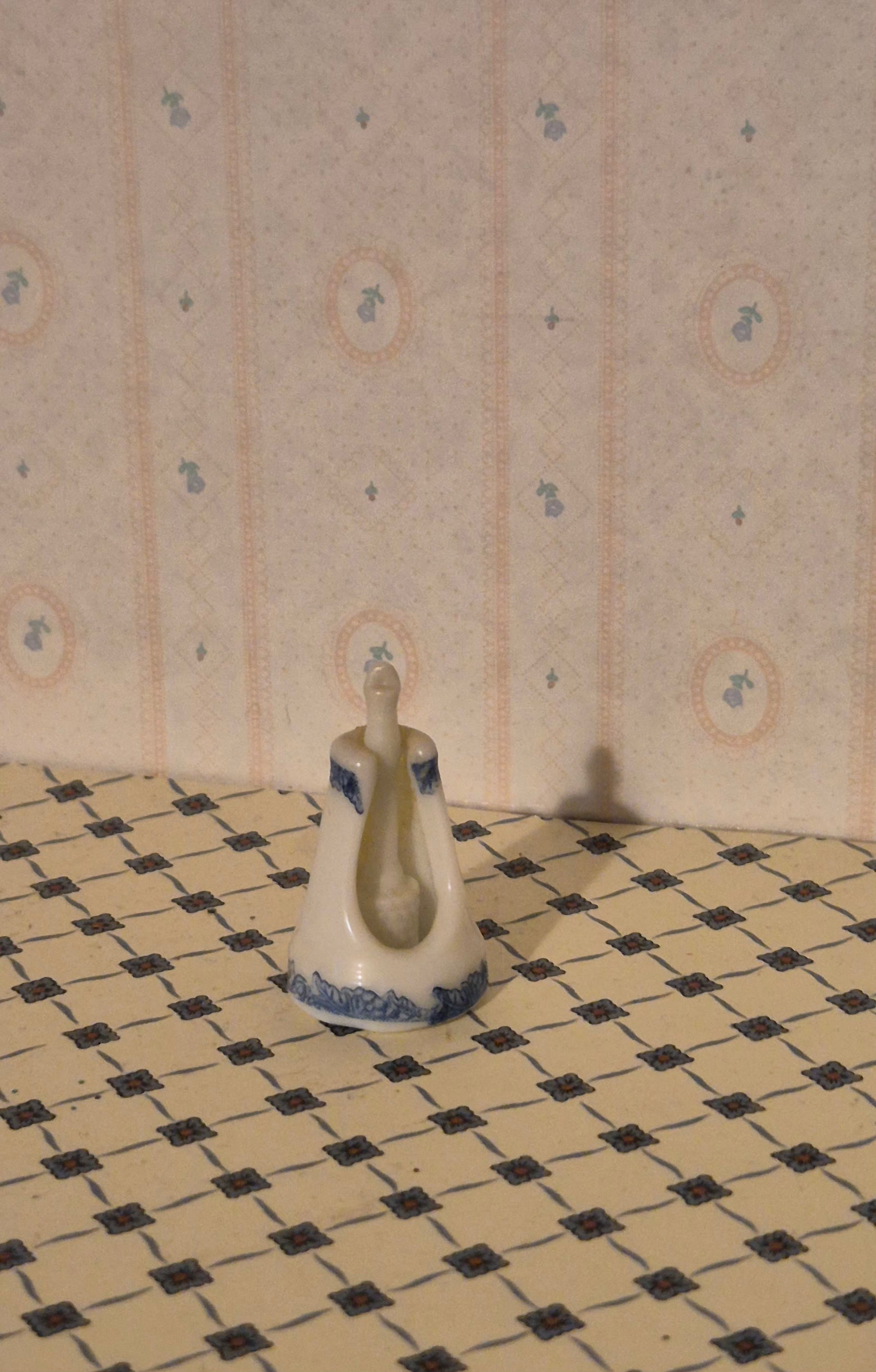 Pæn toiletbørsteholder med børste. Det er porcelæn. Str 1:12. Der er patina og brugsspor.