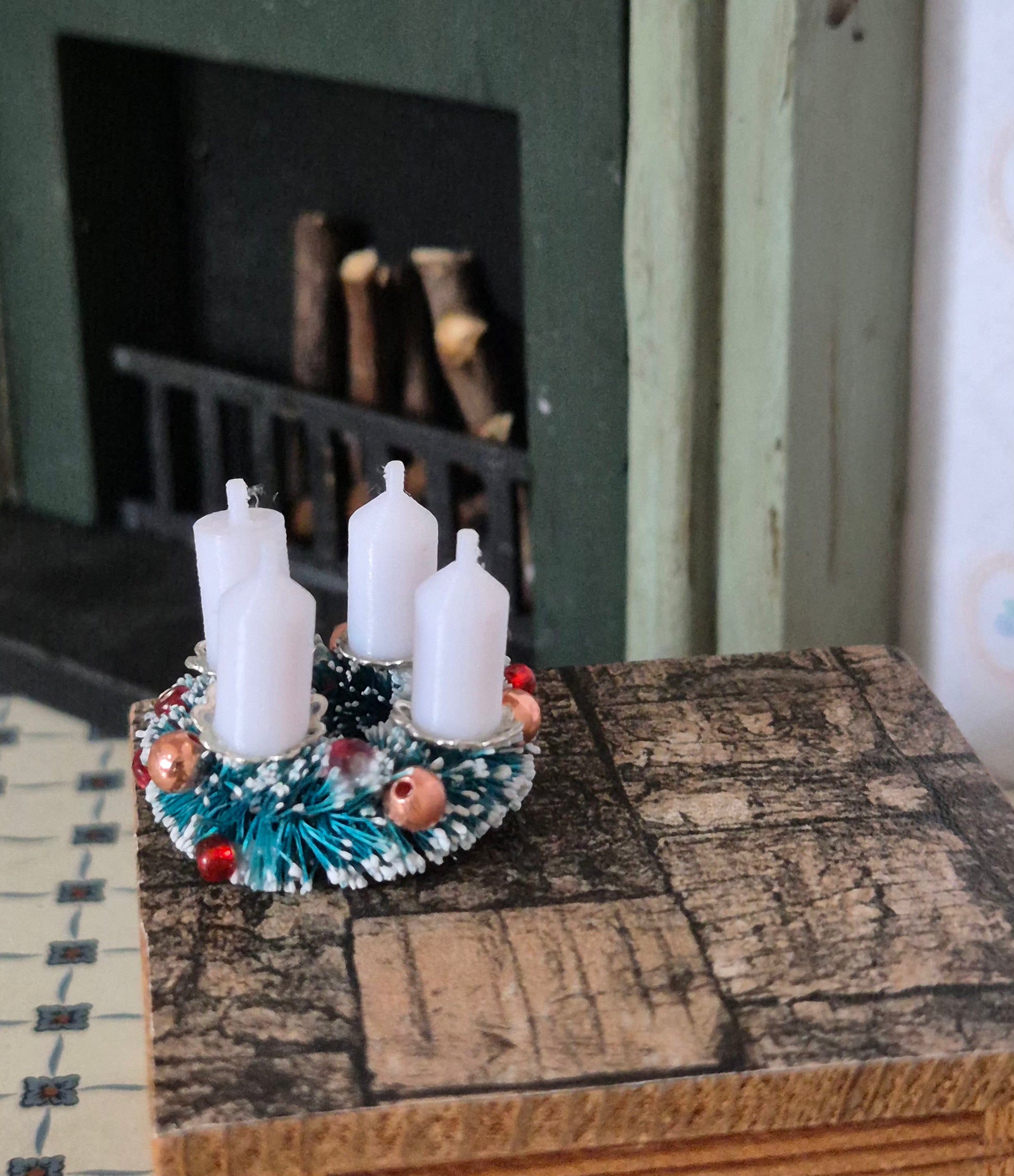 Pæn og fin hjemmelavet adventskrans. Lysene er lidt skæve. Udmærket stand