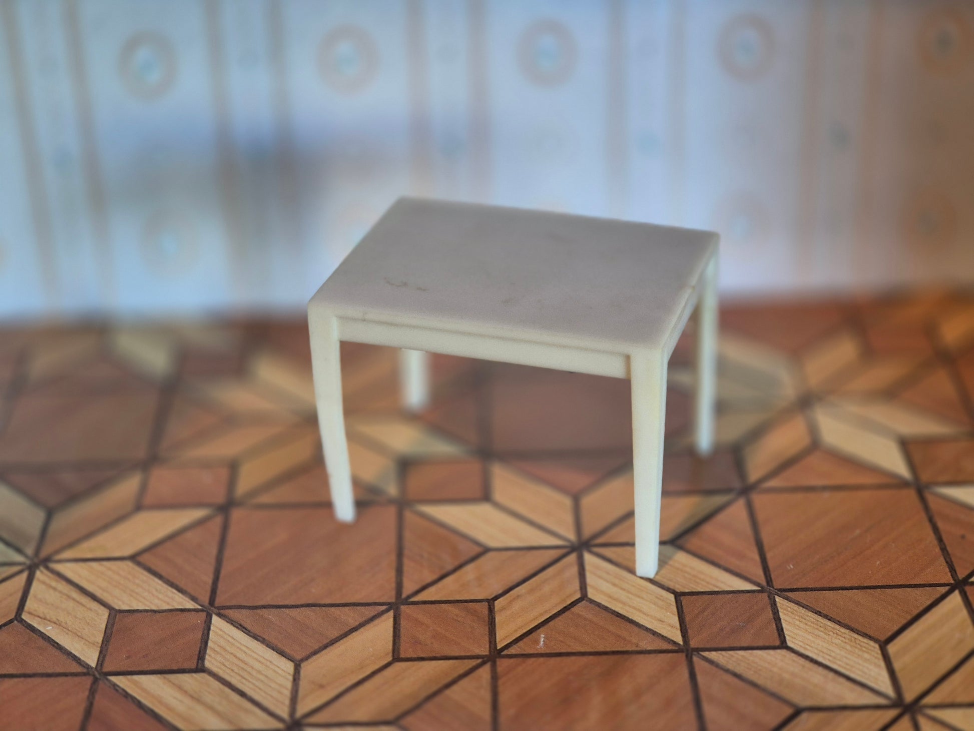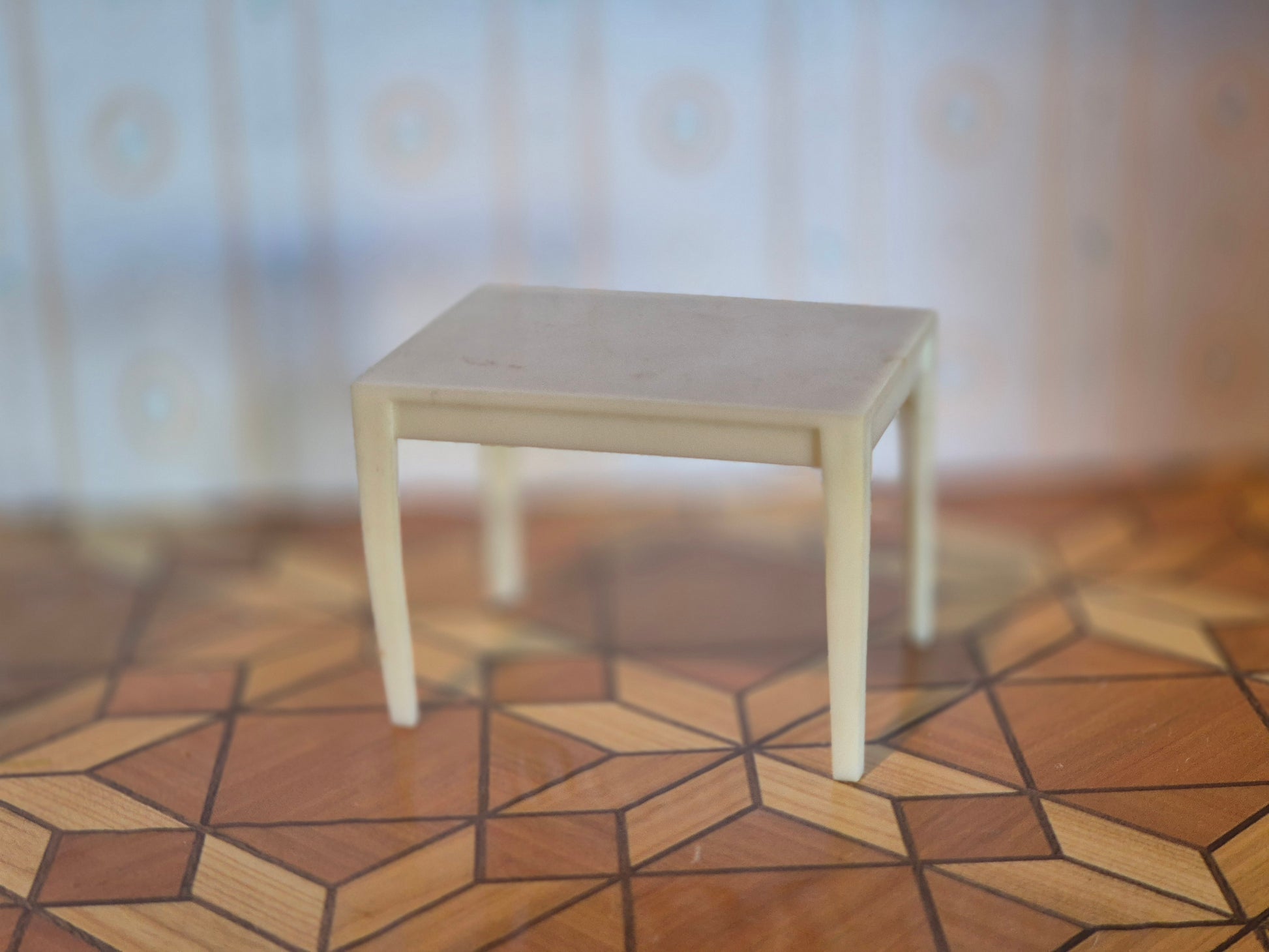 Pænt hvidt bord af Jean West Germany. Udmærket stand med patina og brugsspor. Dukkehusmøbel