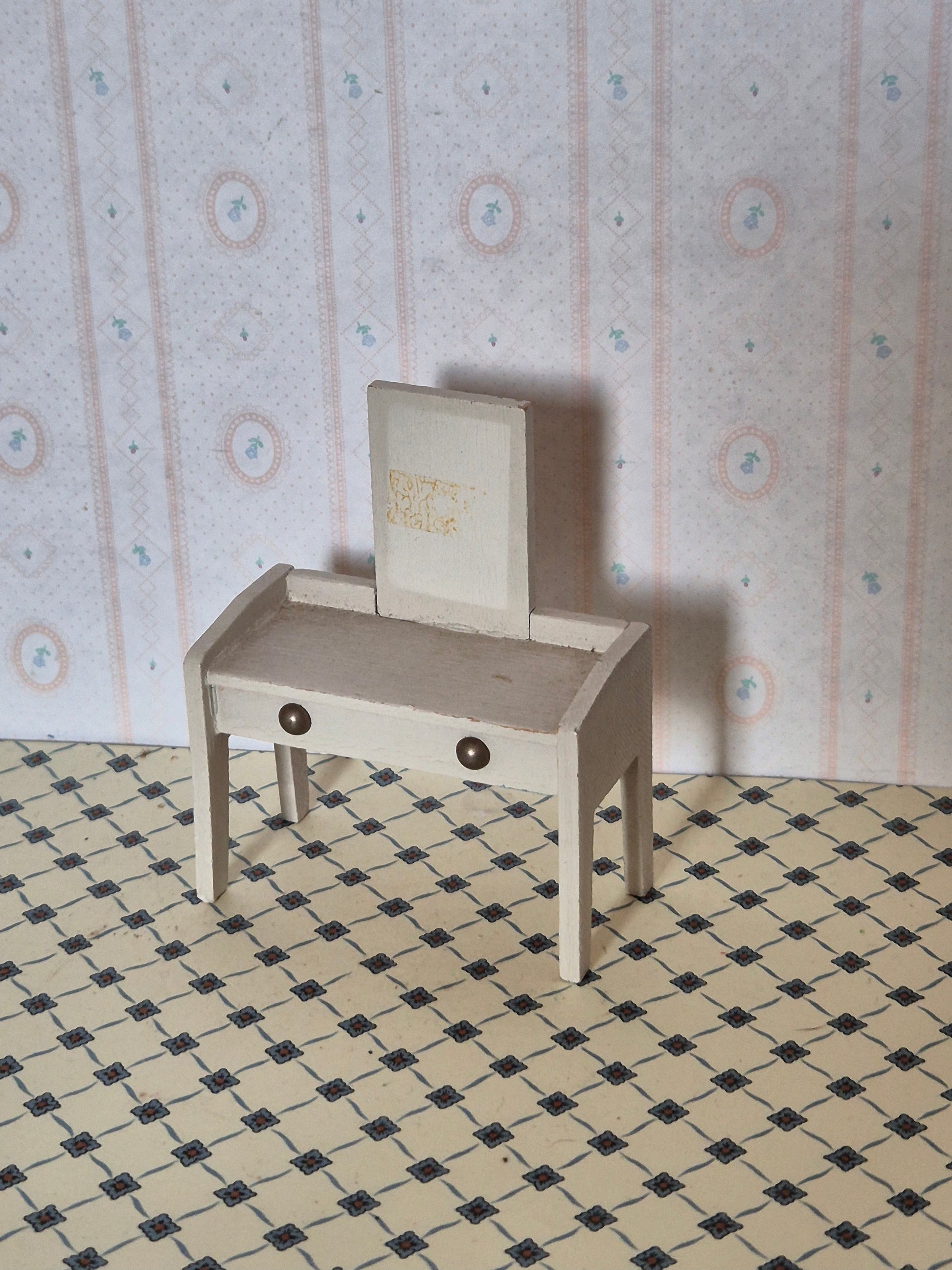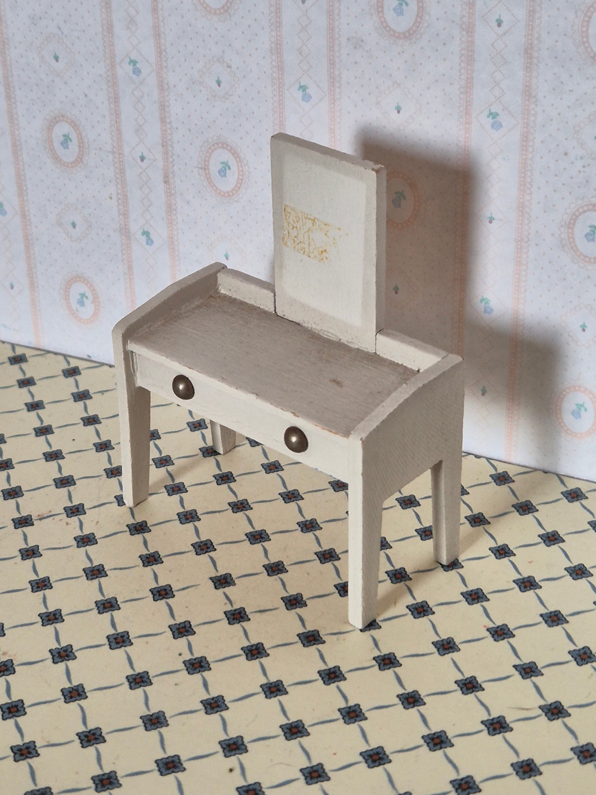 Vintage hvidt sminkebord af Hanse af Skandinavien der mangler spejlet. Ellers pæn stand.
