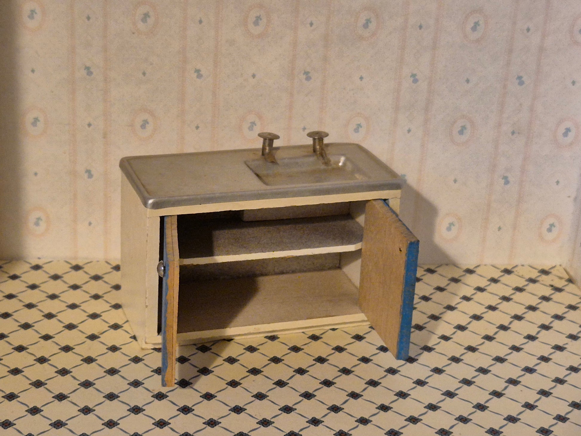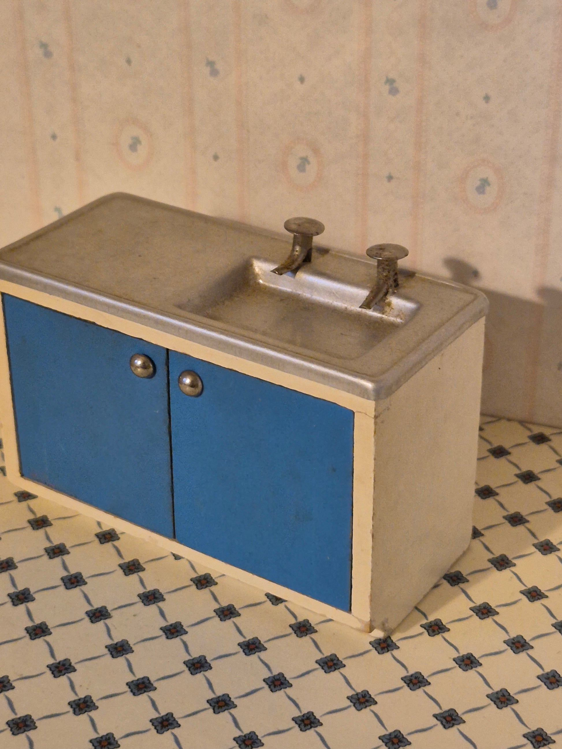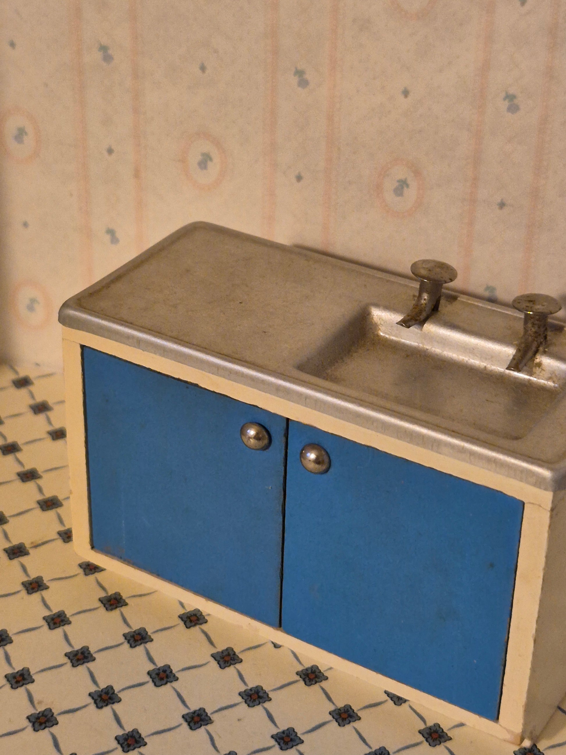 Pæn og fin Lisa af Danmark køkkenvask af træ og metal i udmærket stand med patina og brugsspor.