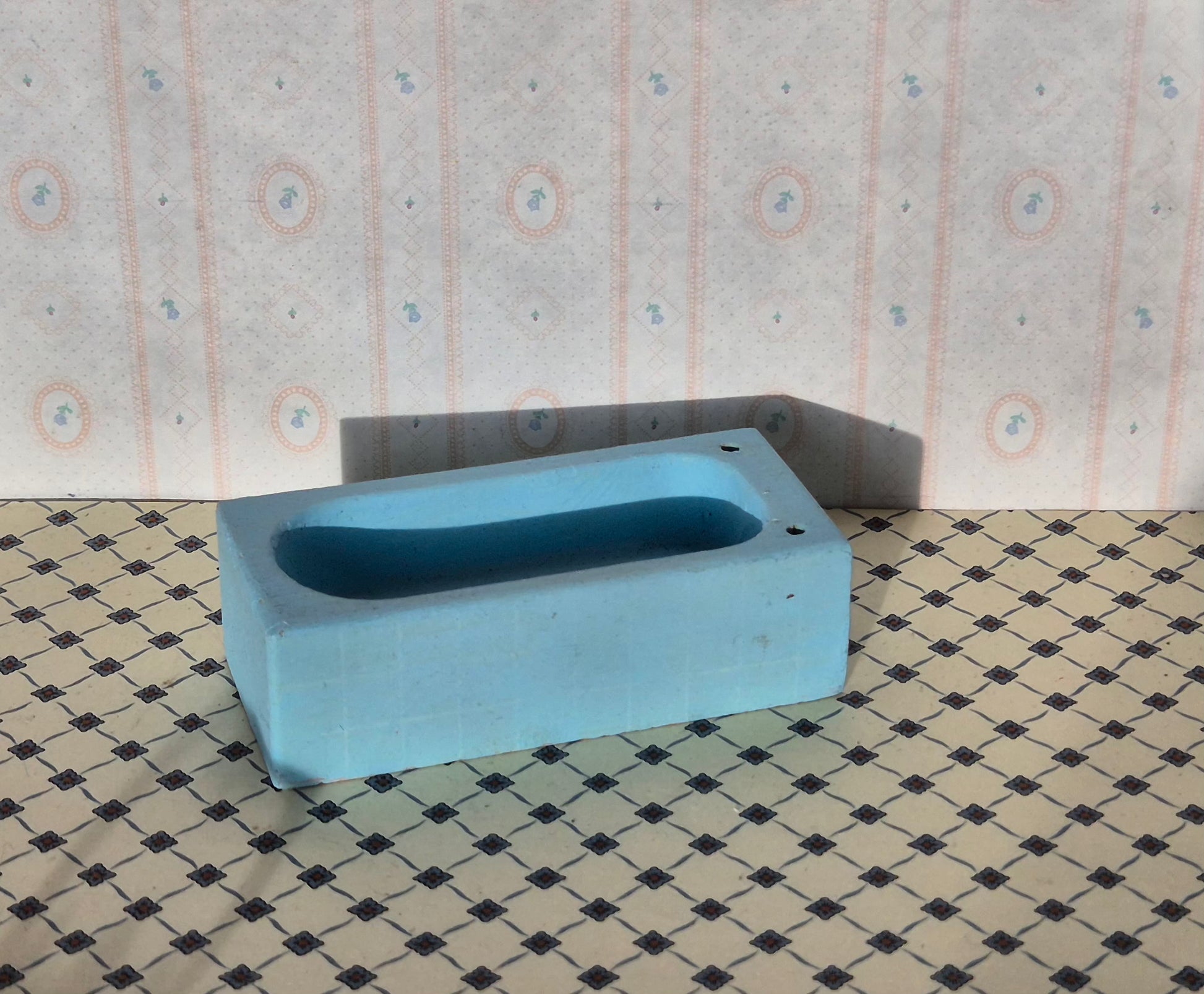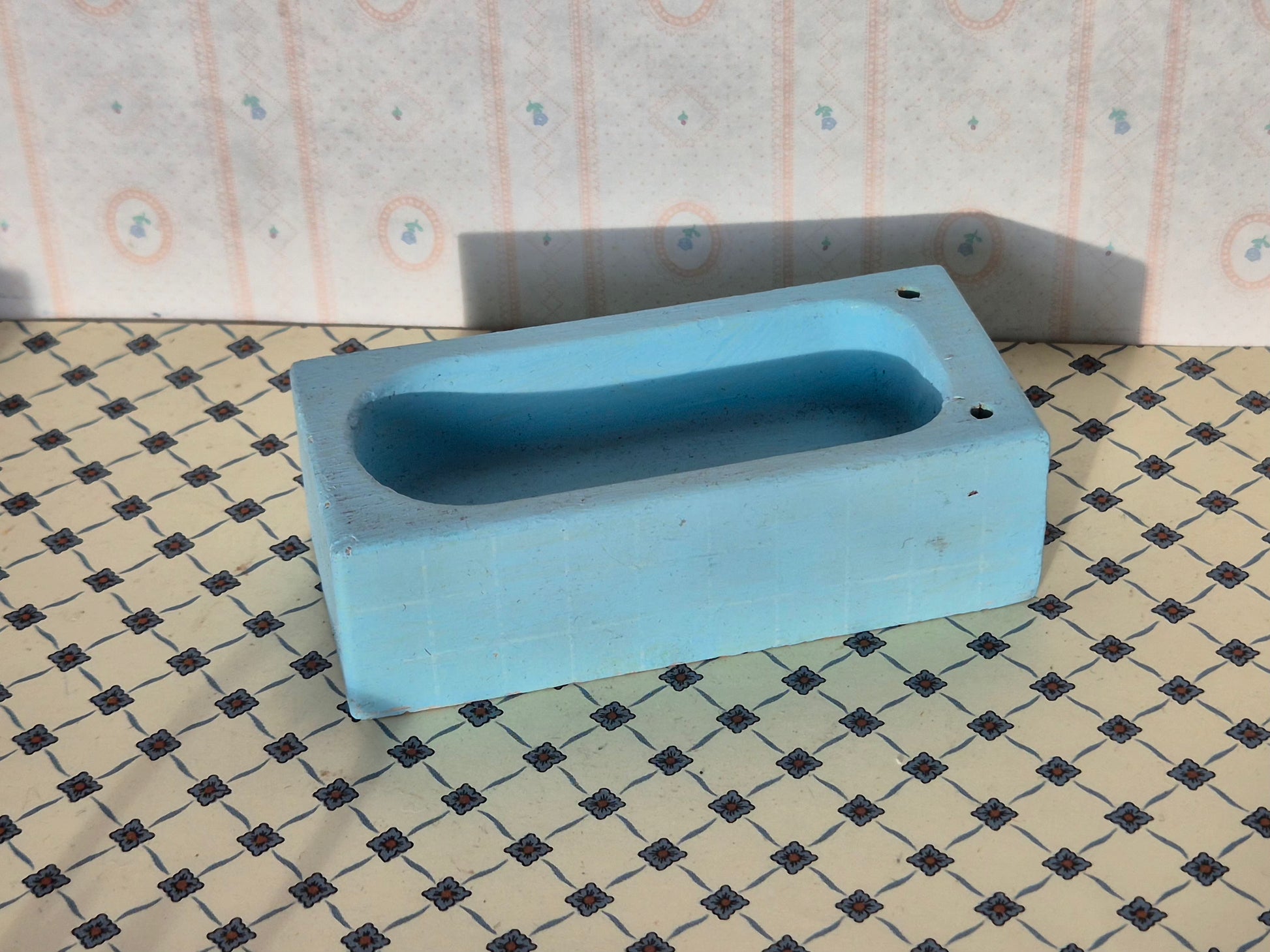 Vintage badekar 1:16, der ser ud til at være blevet malet. Den originale flise-struktur kan anes. Der mangler vandhaner.