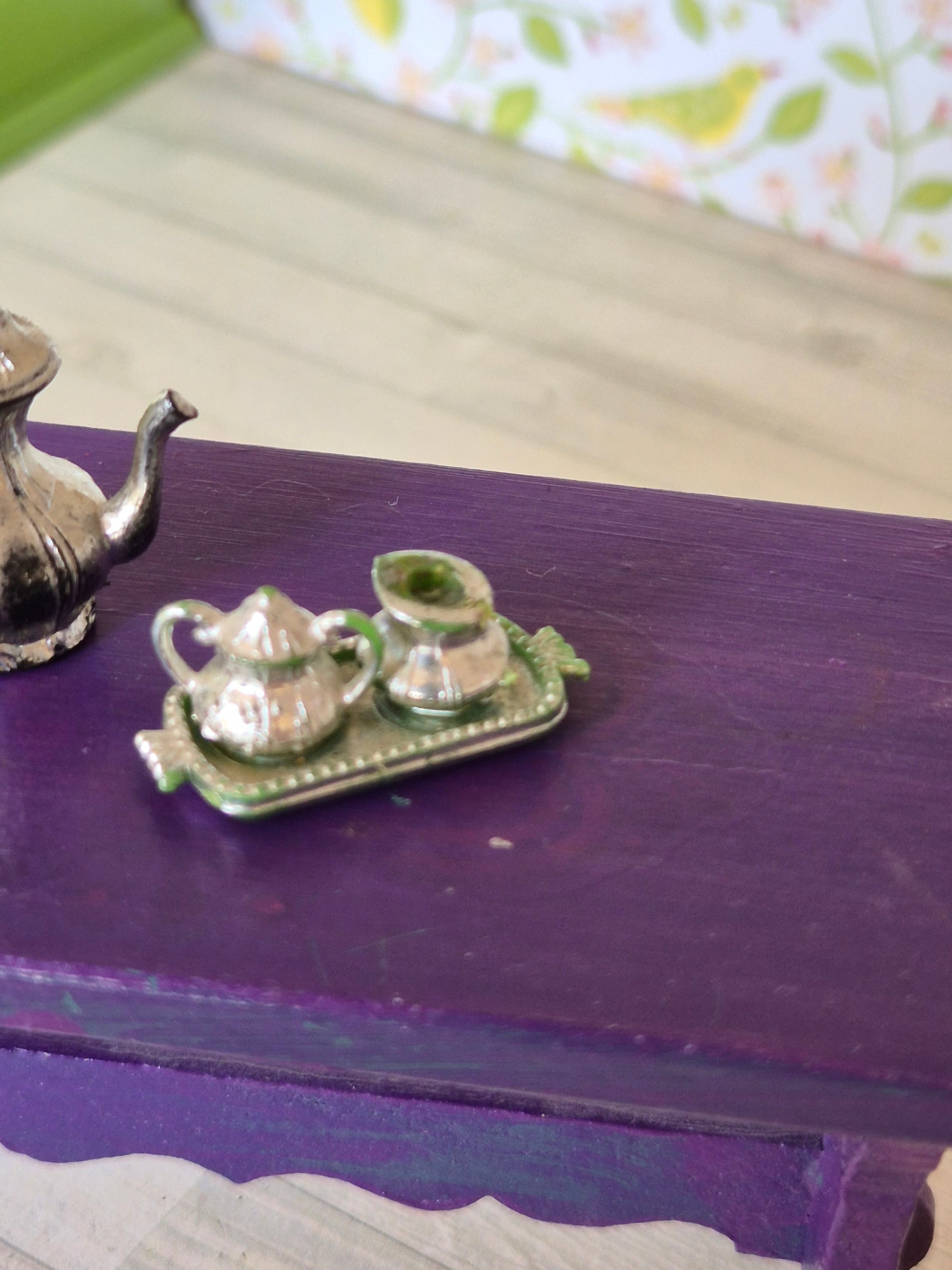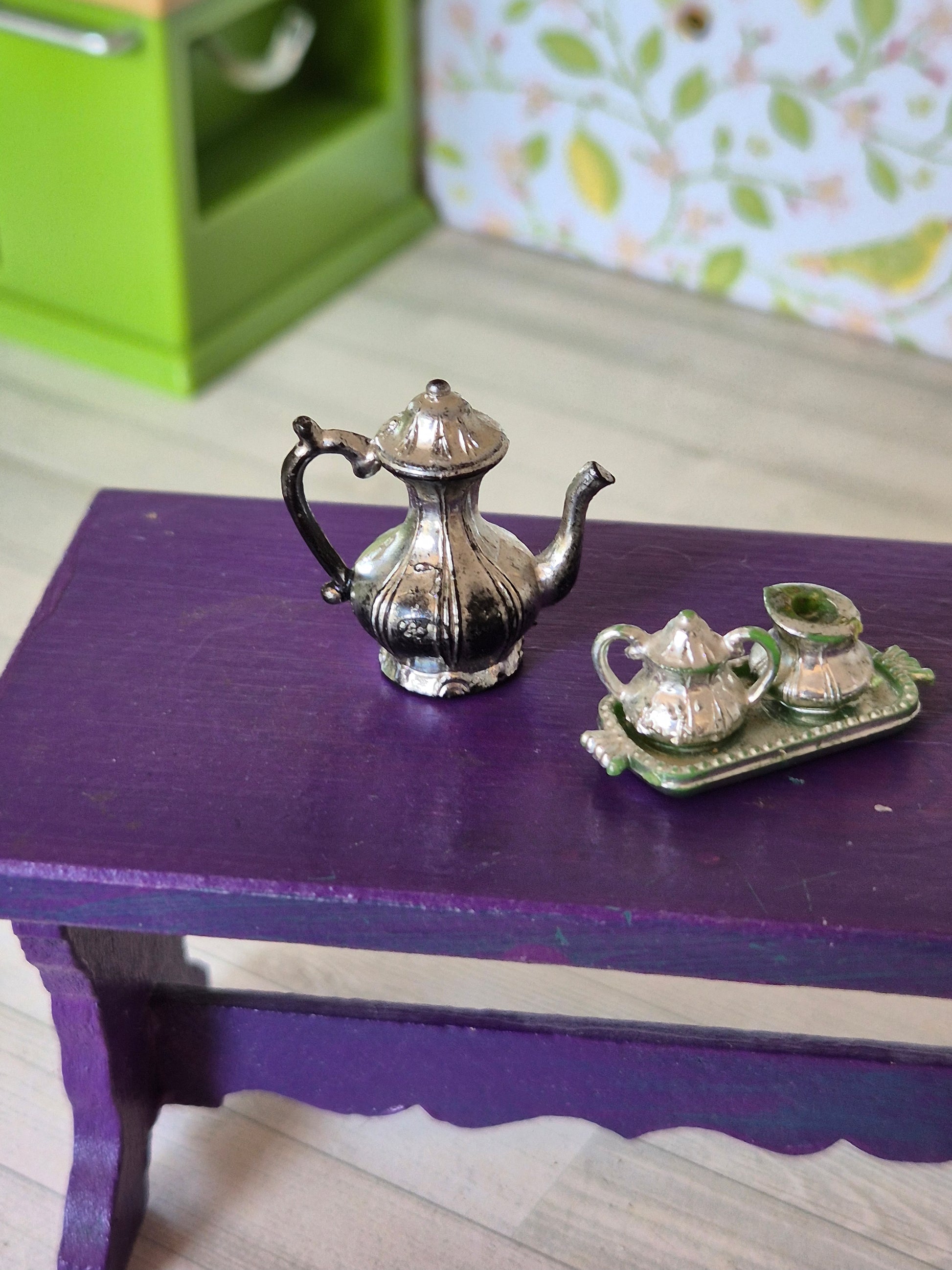 Ældre Lisa kaffekande sæt med sukkerskål og flødekande. Det har en del patina og brugsspor