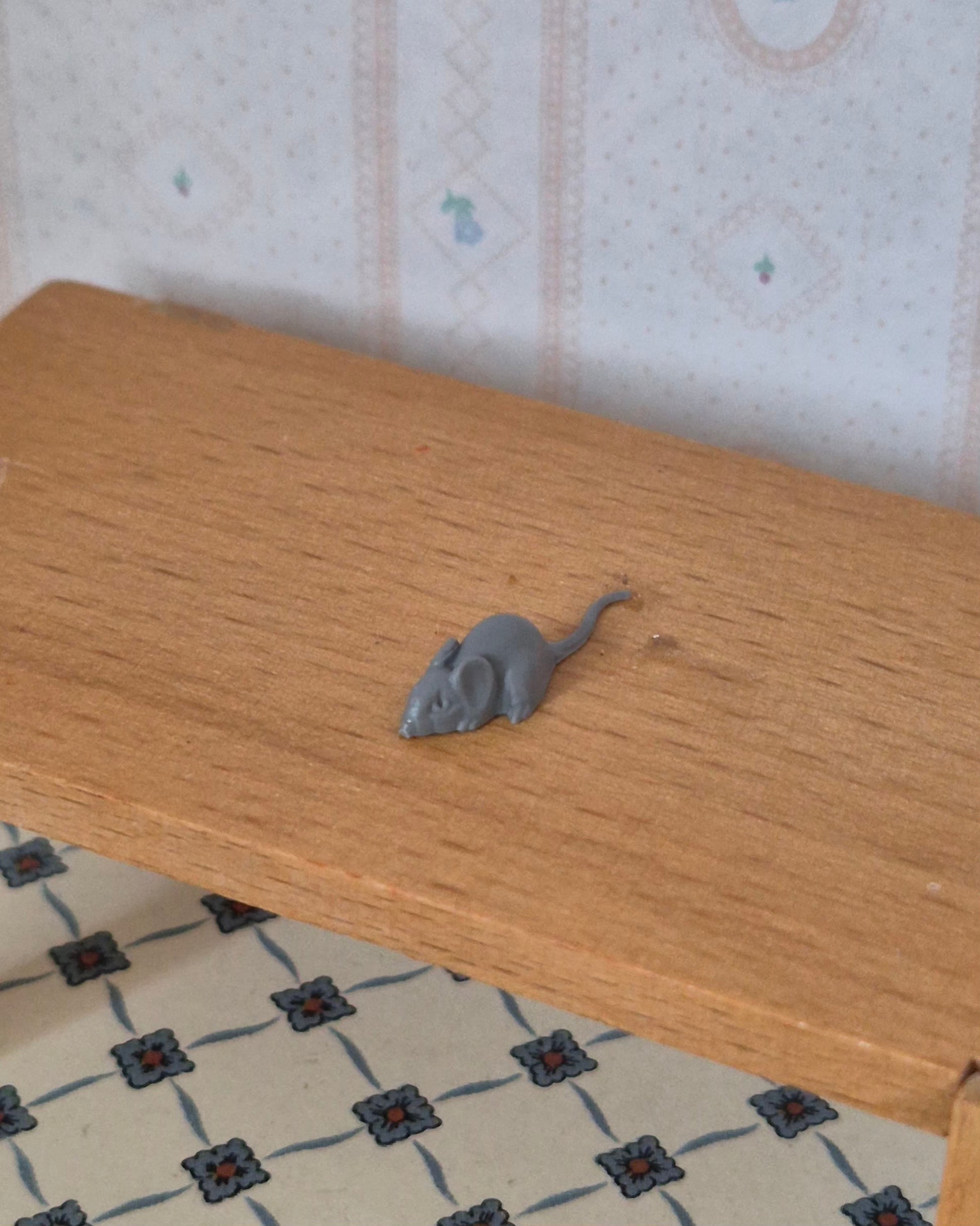 Lille grå mus af plast. Ca 1,8 cm inkl hale