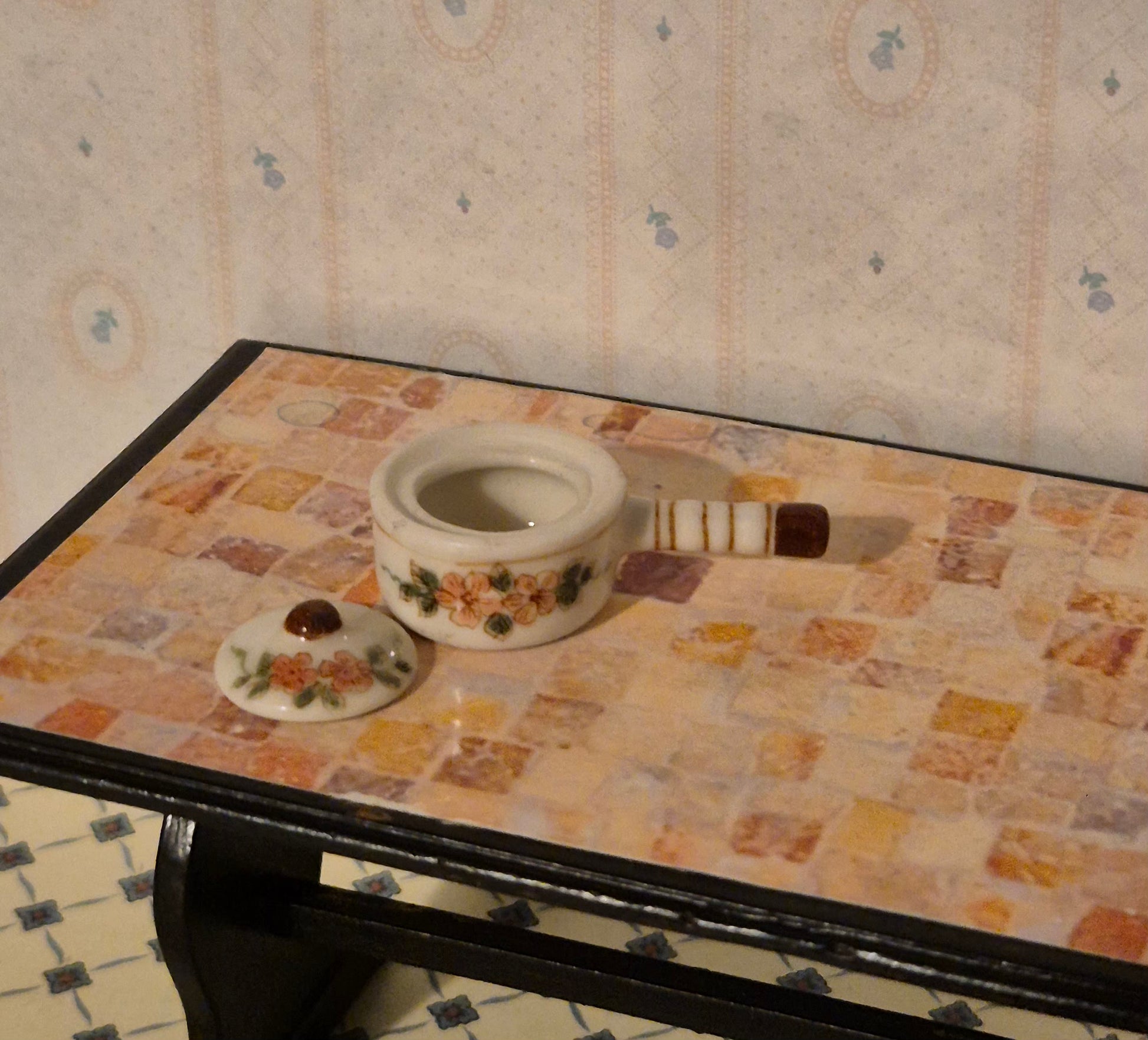 Pæn og fin gryde / kasserolle af porcelæn med blomstermotiv.