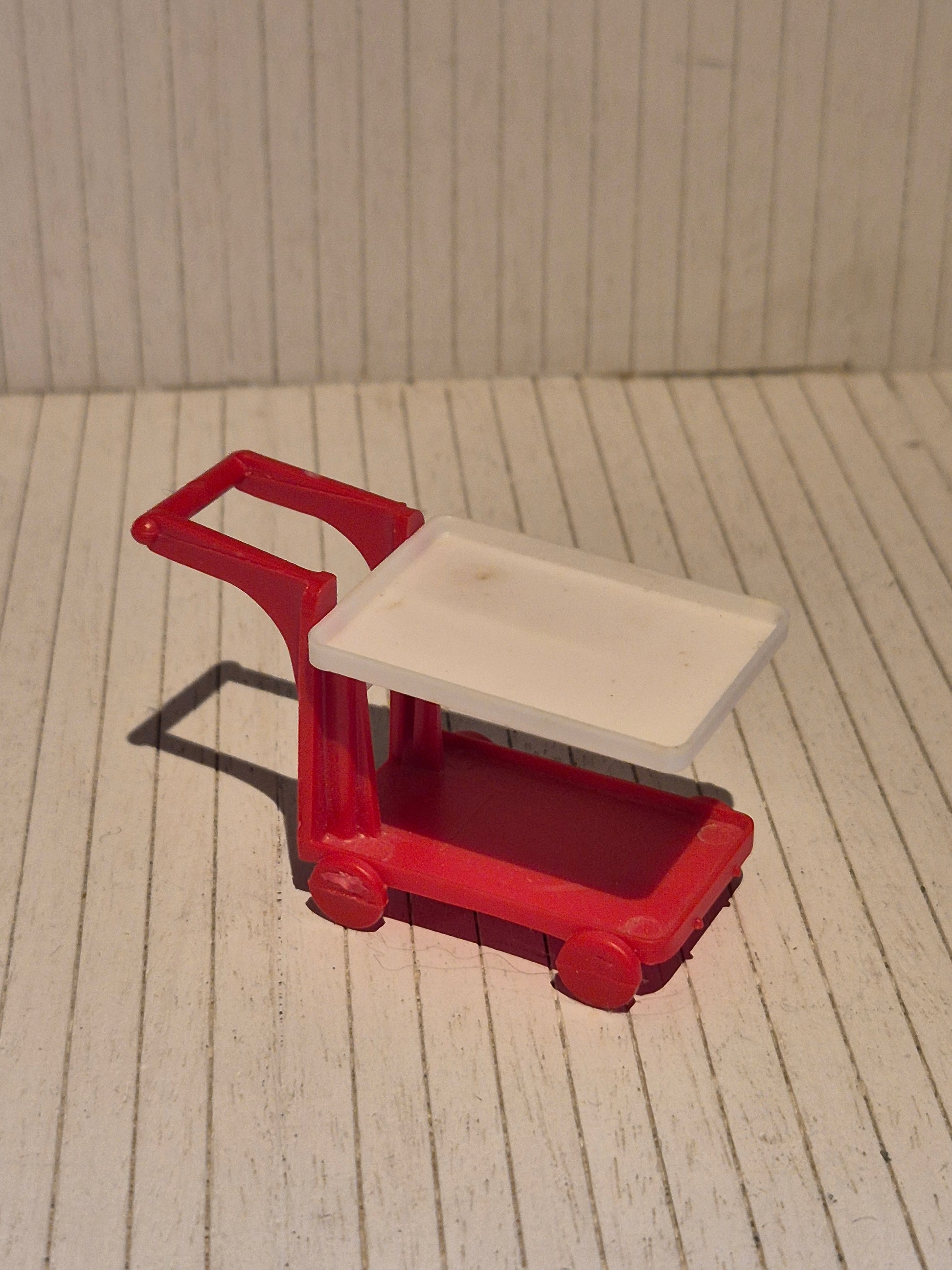 Pæn serveringsvogn til dukkehuset af det tyske mærke Jean West Germany. Et ældre plastik dukkehusmøbel.