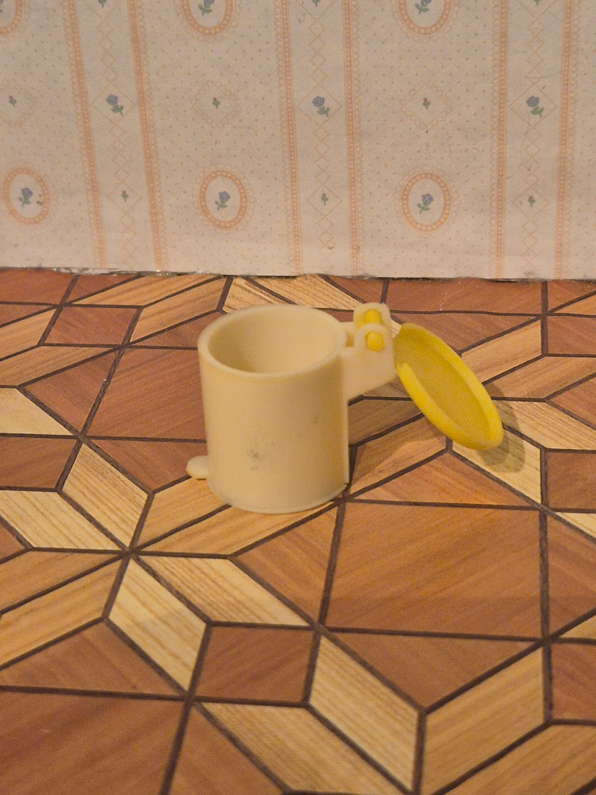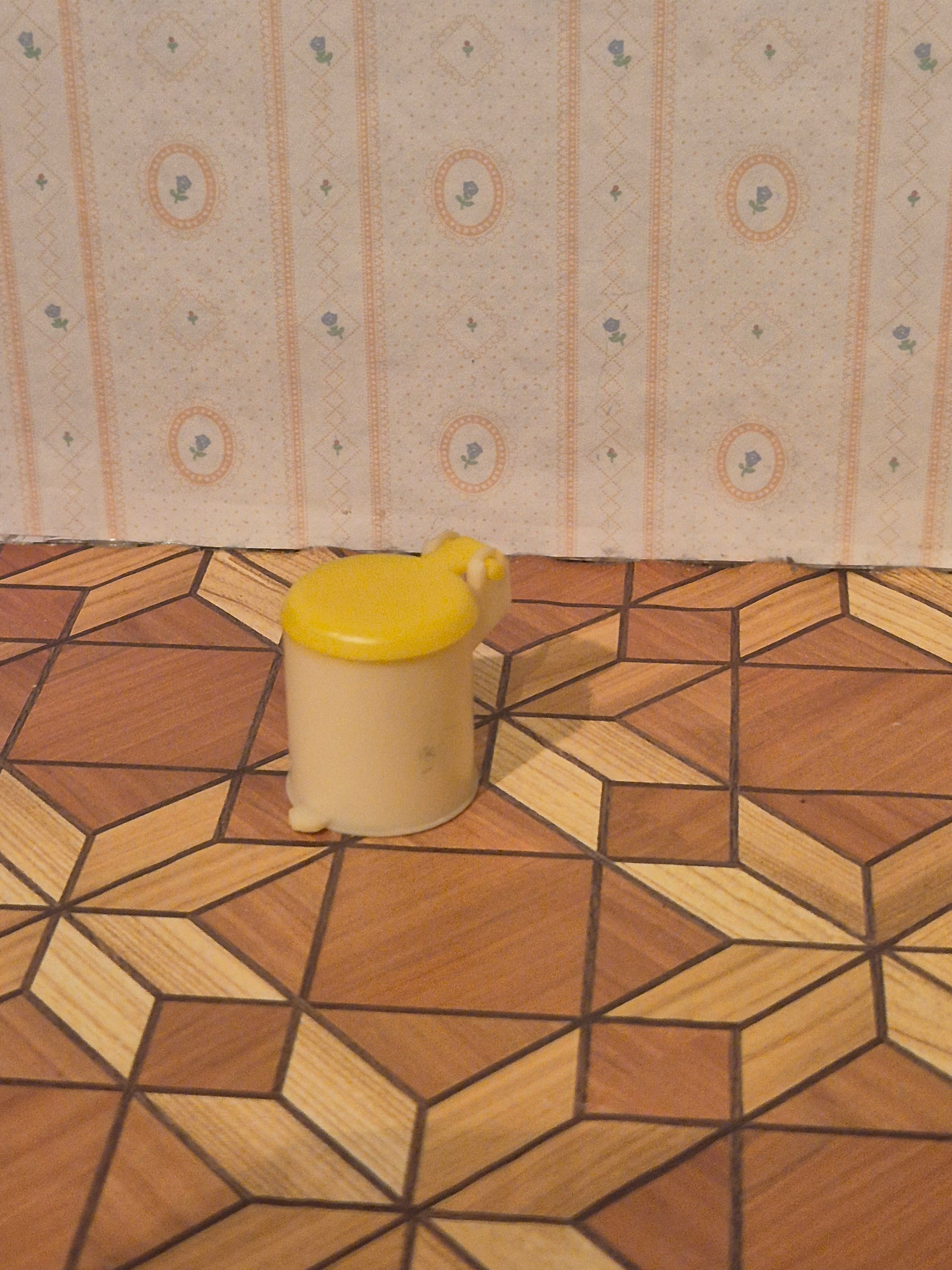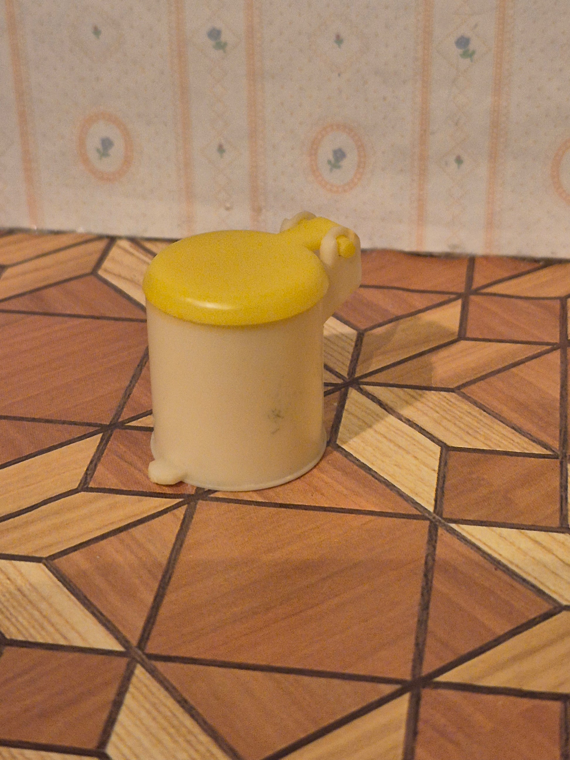 Ældre gul plastik skraldespanden mærket Jean West Germany.