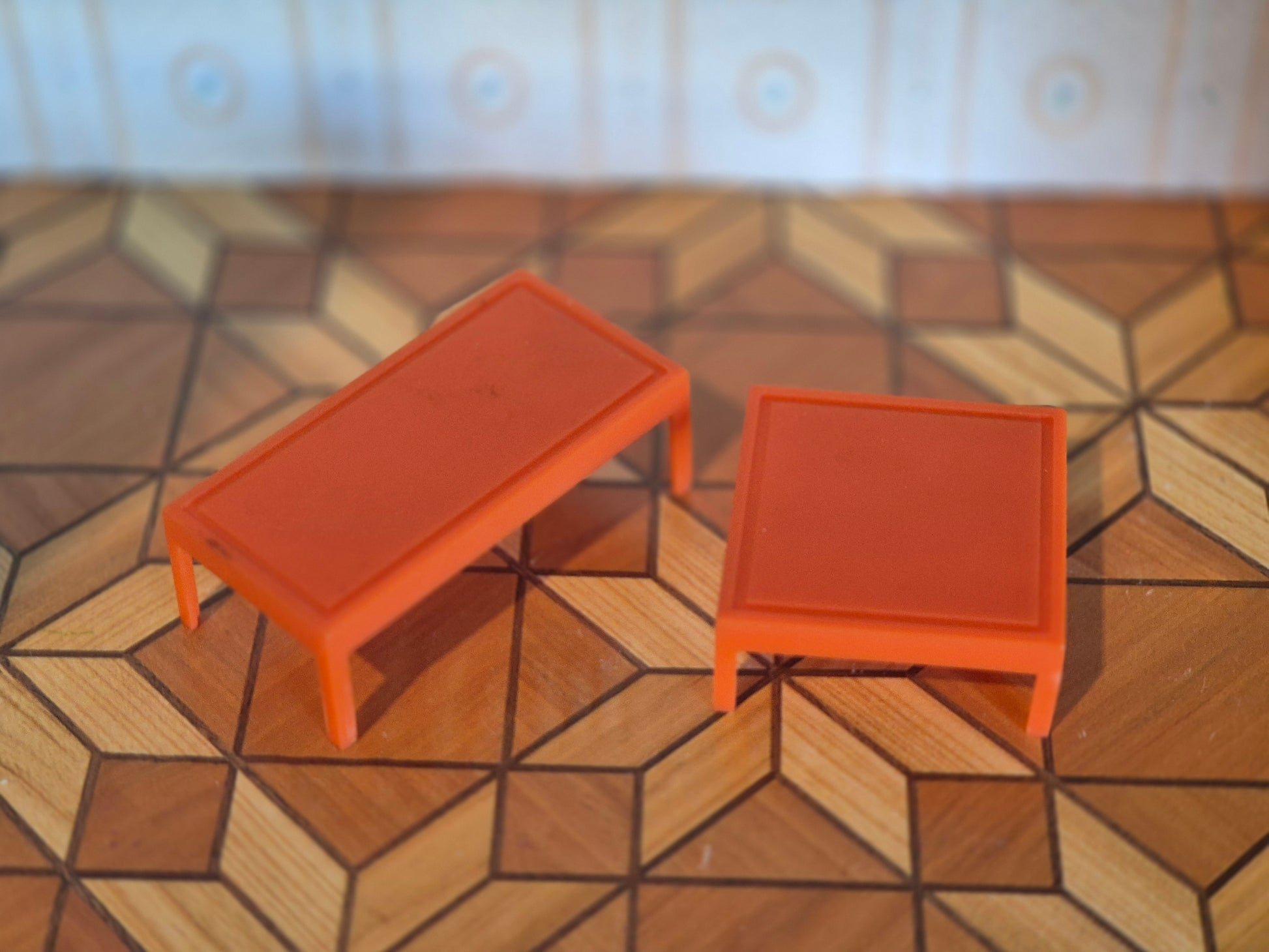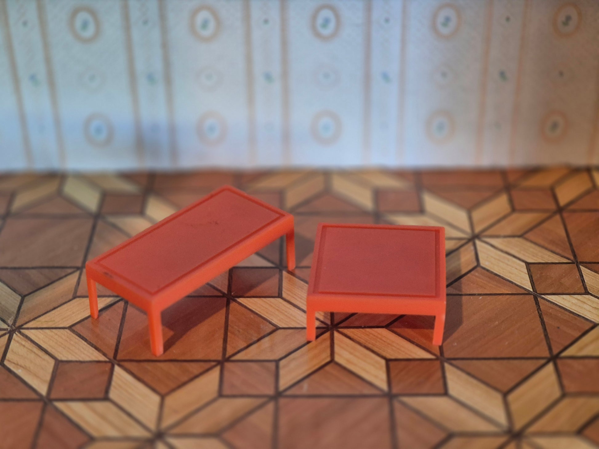 2 orange lave sofaborde af Jean West Germany. Omtrent 1 cm høj.