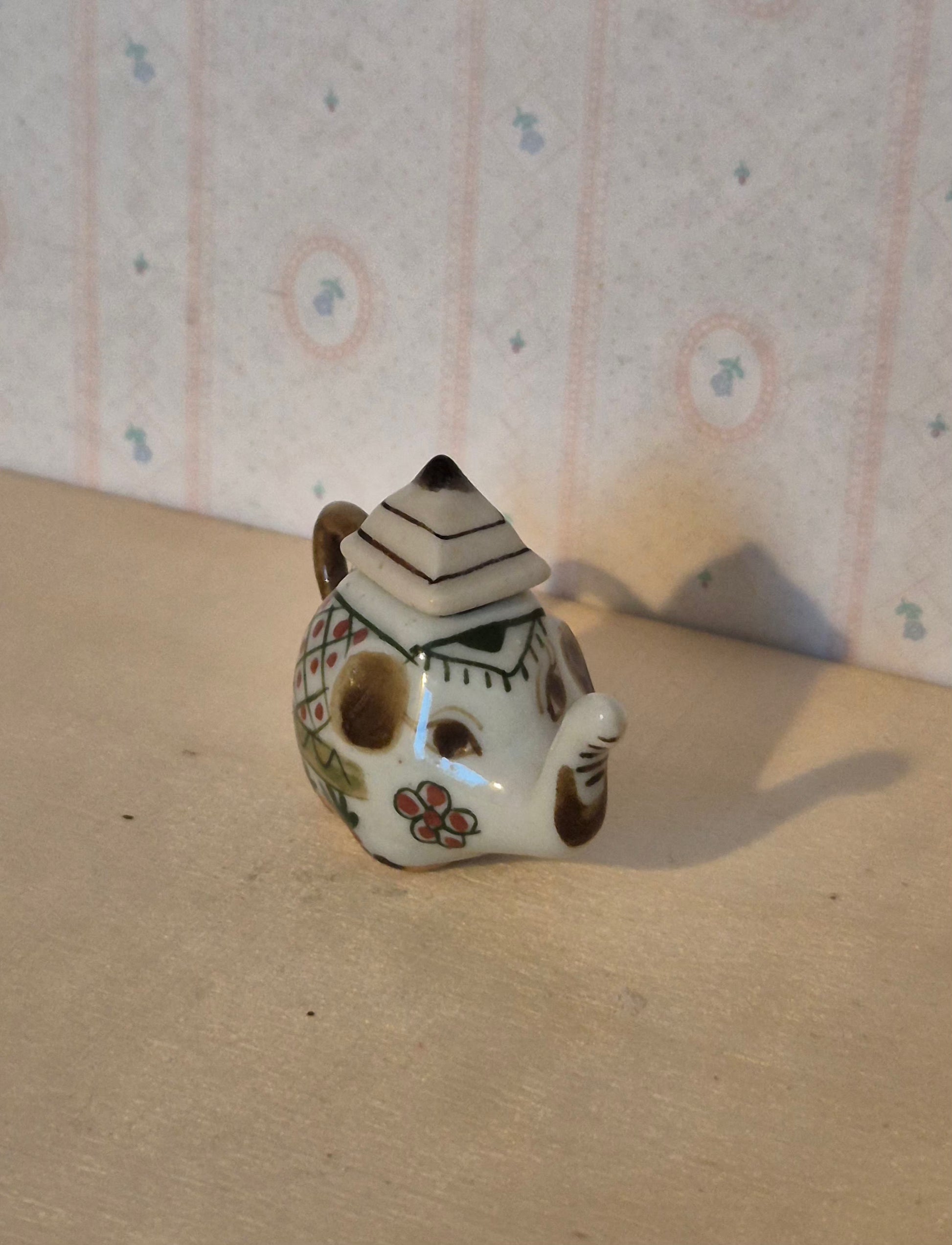 Tekande udformet som elefant. Den er 1:10 - 1:8. Men kan bruges som pynt eller lignende til dukkehuset. Den er af porcelæn.