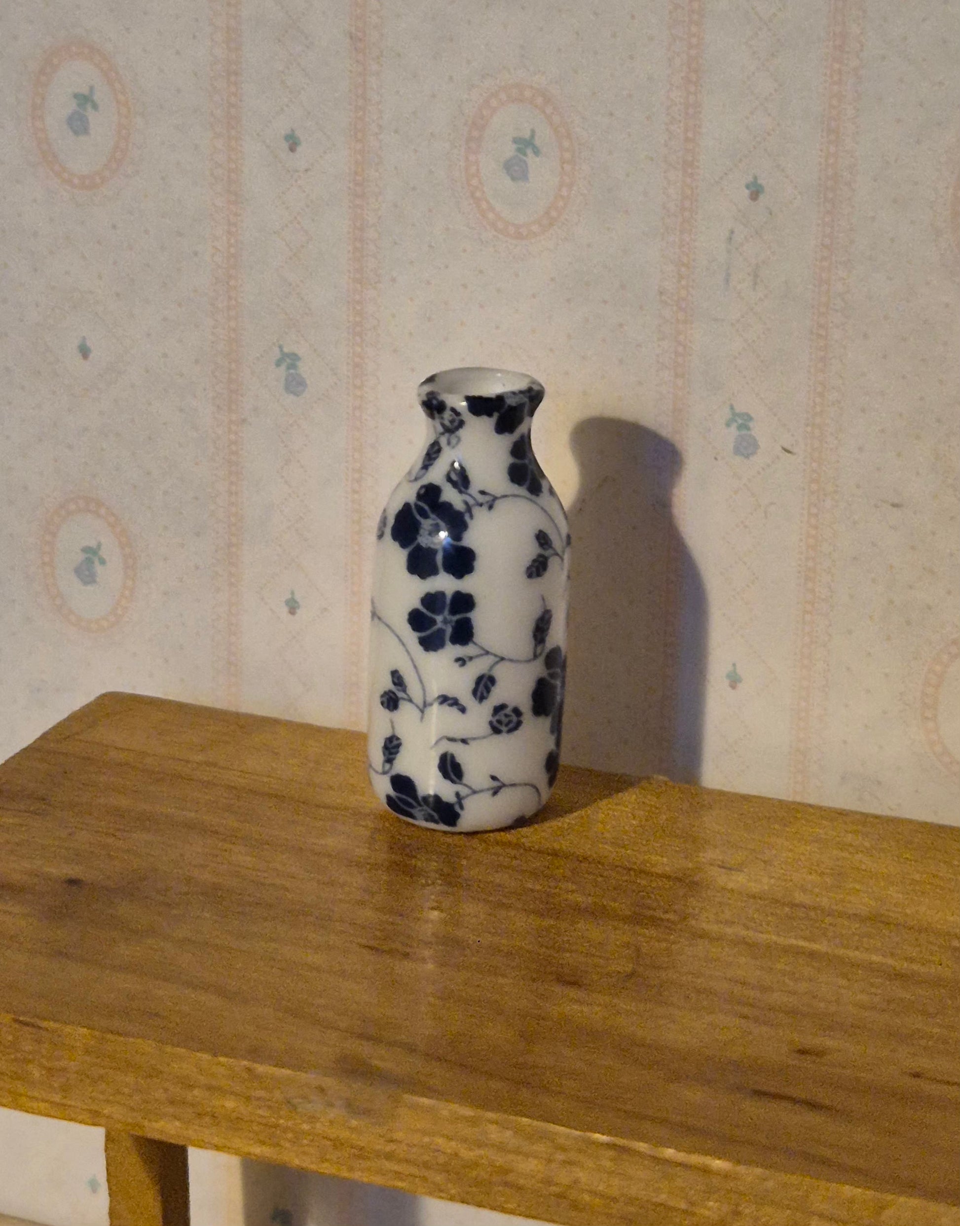 Pæn vase i hvid porcelæn med blåt mønster. Udmærket stand. Ca 3 cm høj.
