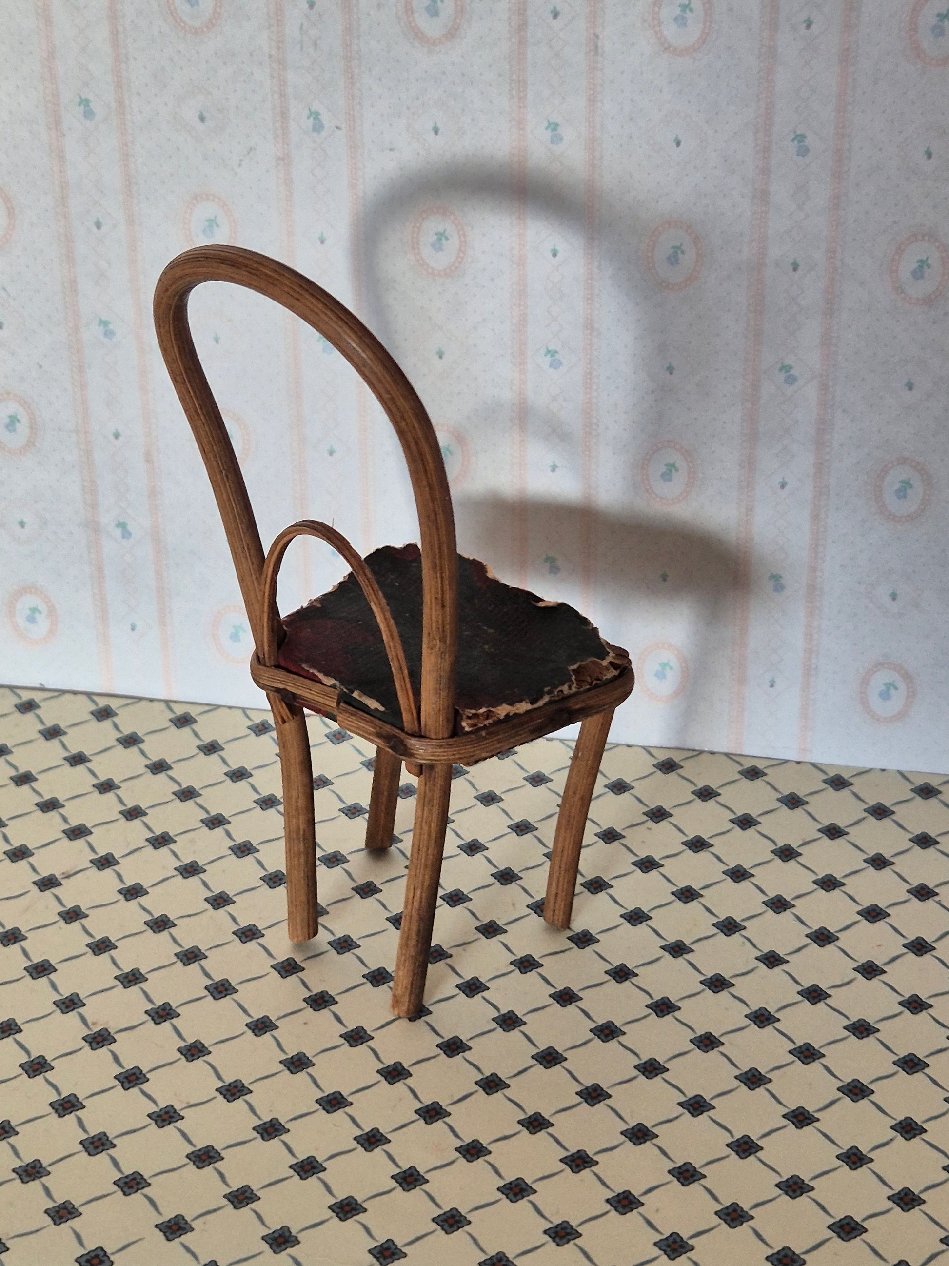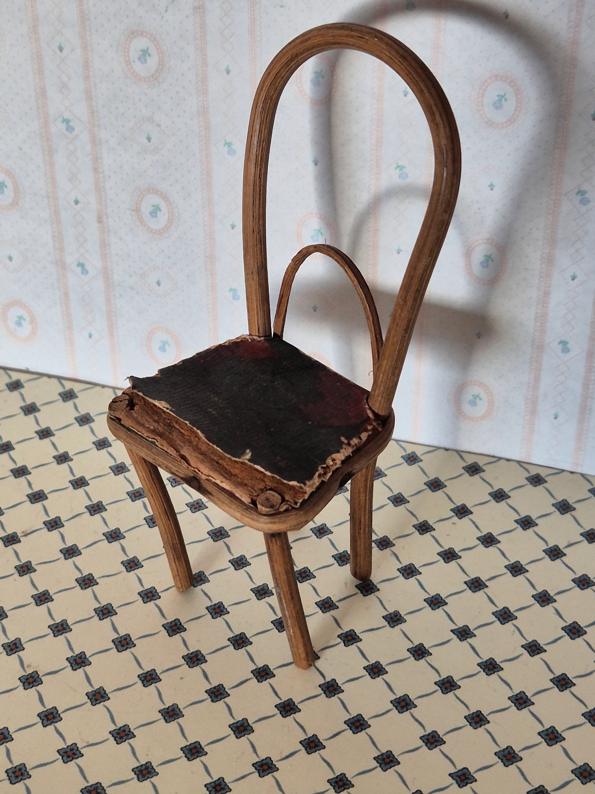 Antik stol. Skrøbelig, dog intakt. Den er 1:10.