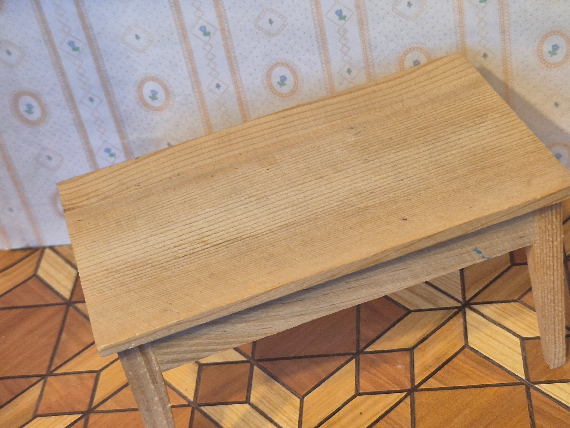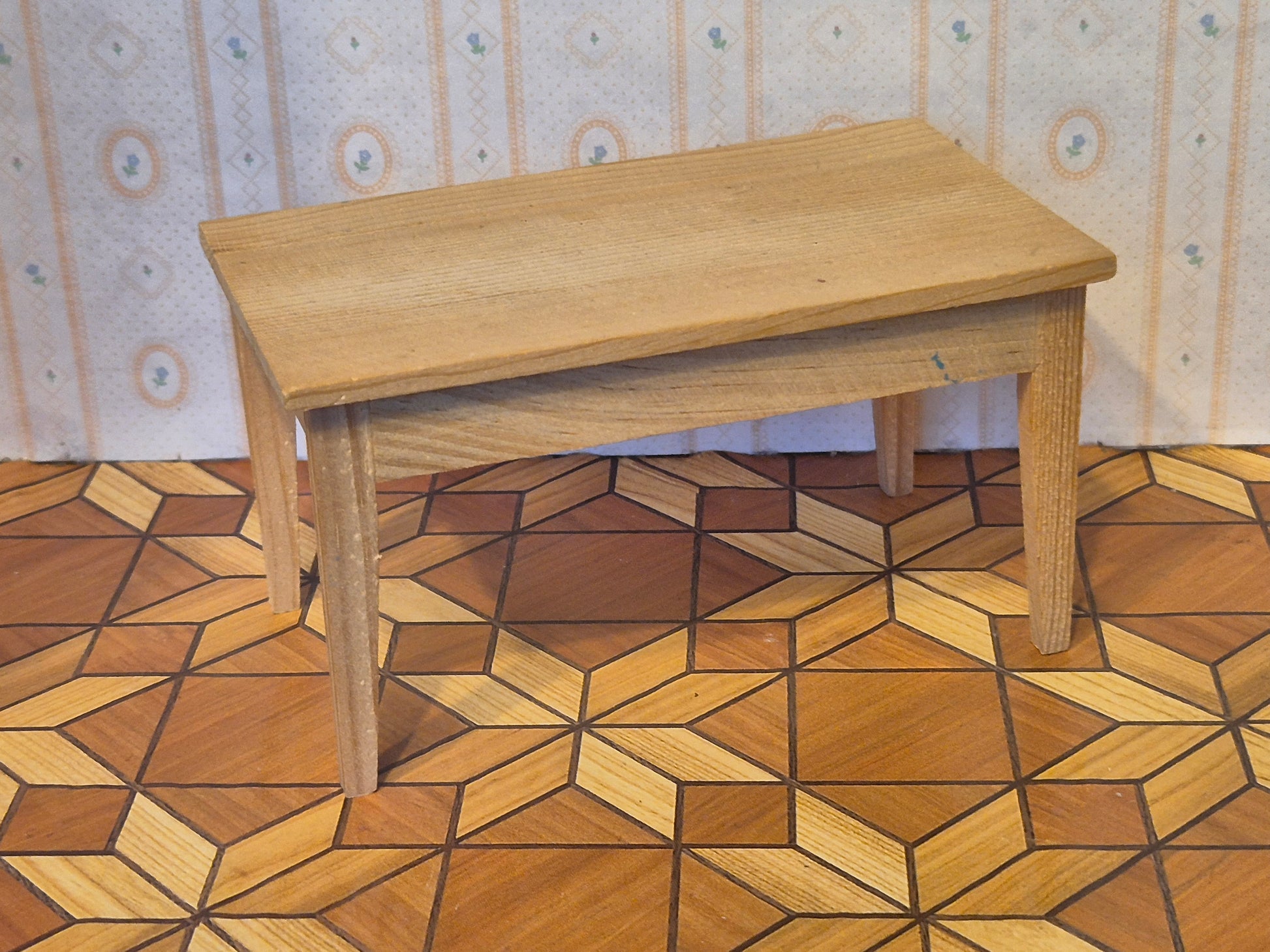 1:12 bord af træ. Robust, pænt bord i ubehandlet lyst træ.