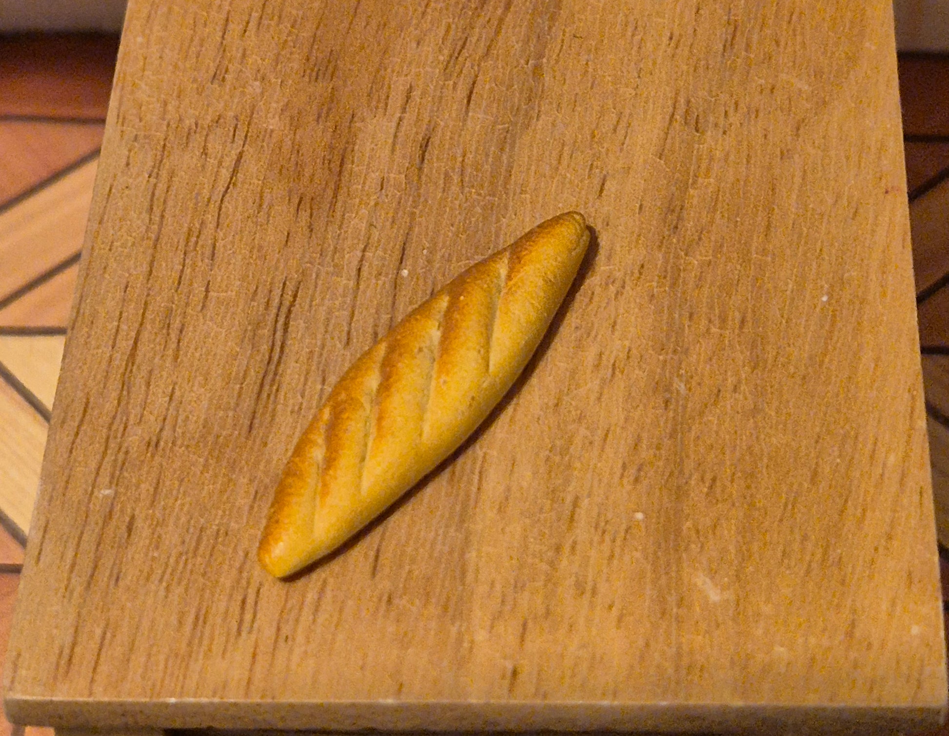 1:12 brød, længere flutes eller baguette. Hjemmelavet