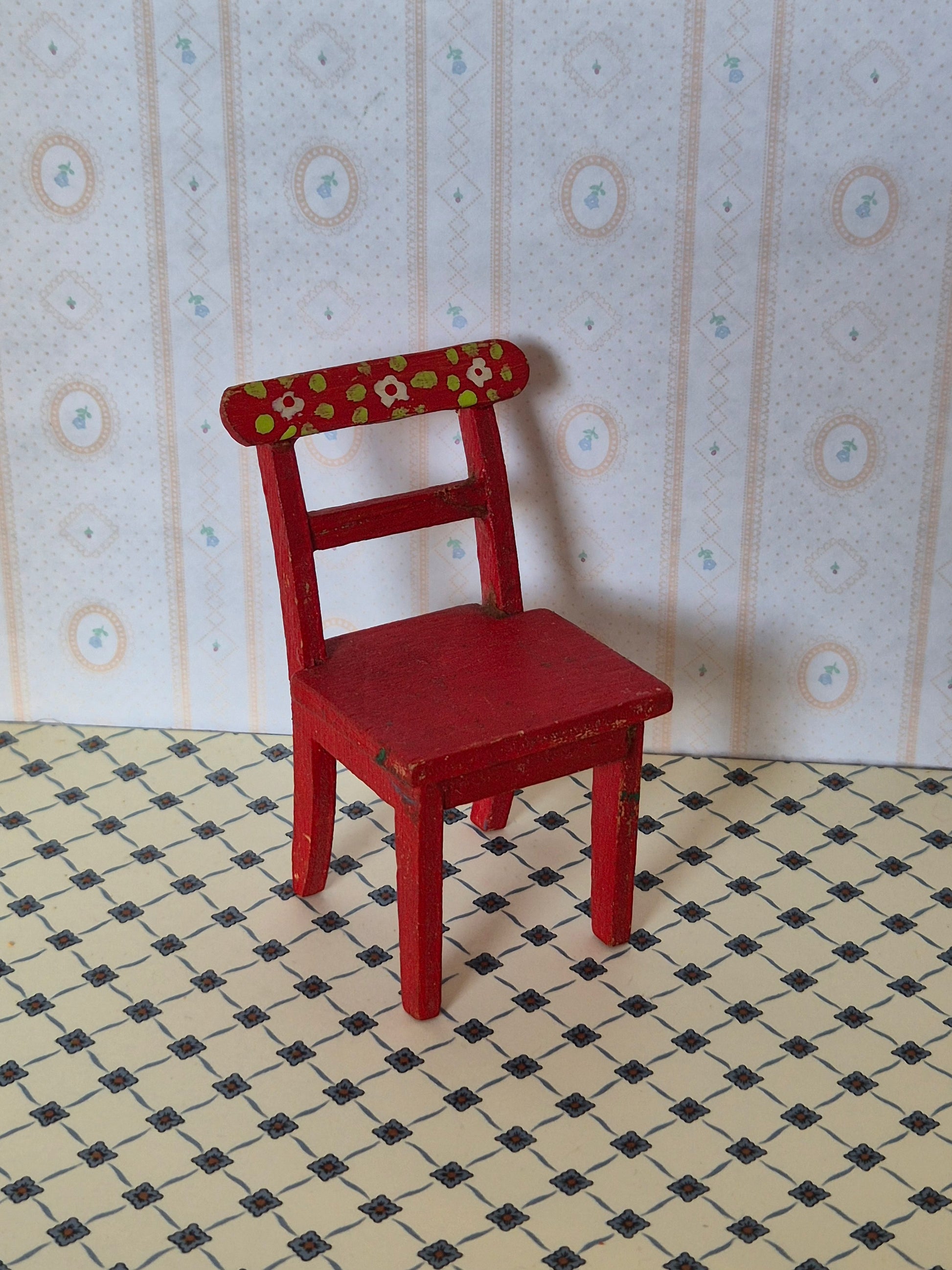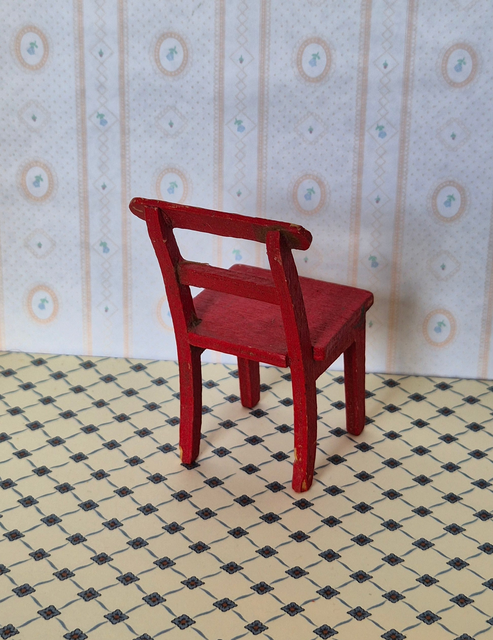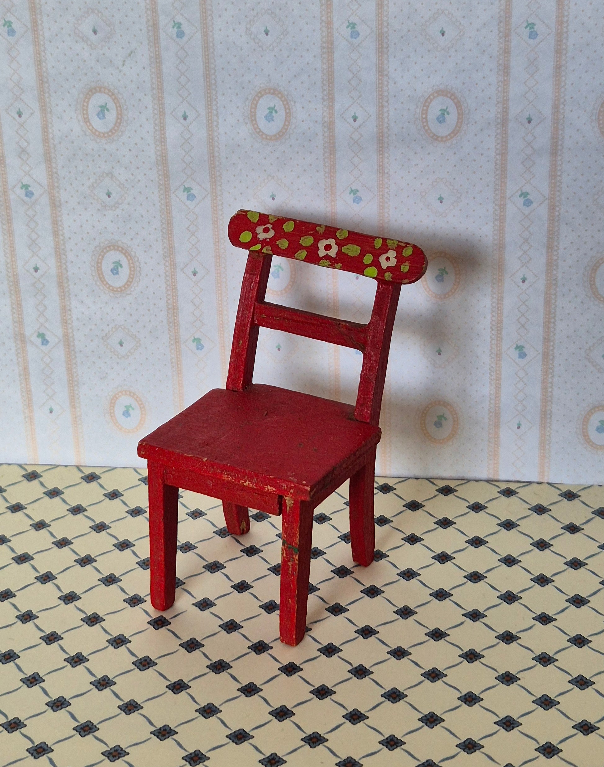 Vintage Dora Kuhn stol 1:12 med brugsspor og patina.