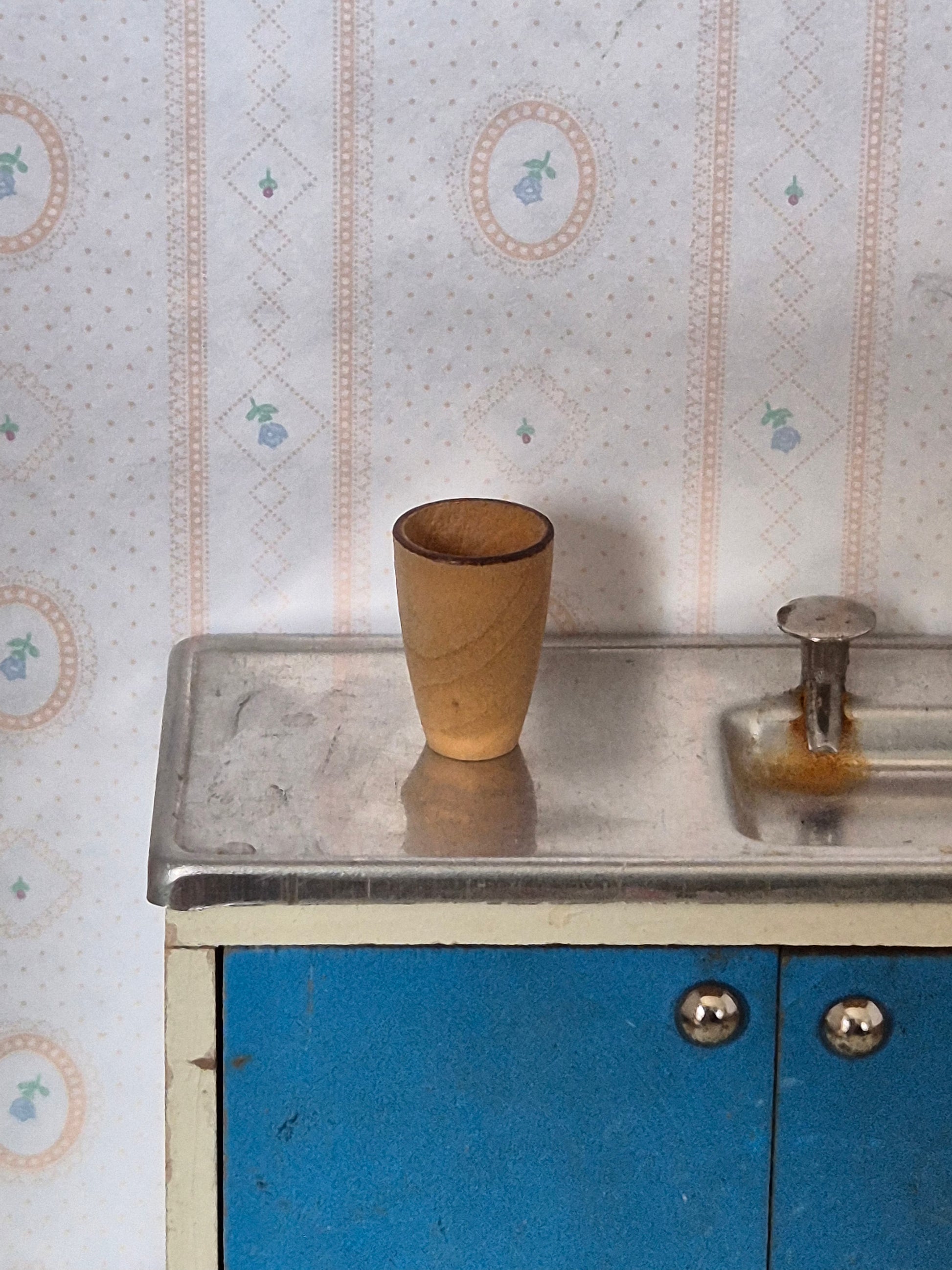 Pænt vintage drikkebæger af træ str 1:12.