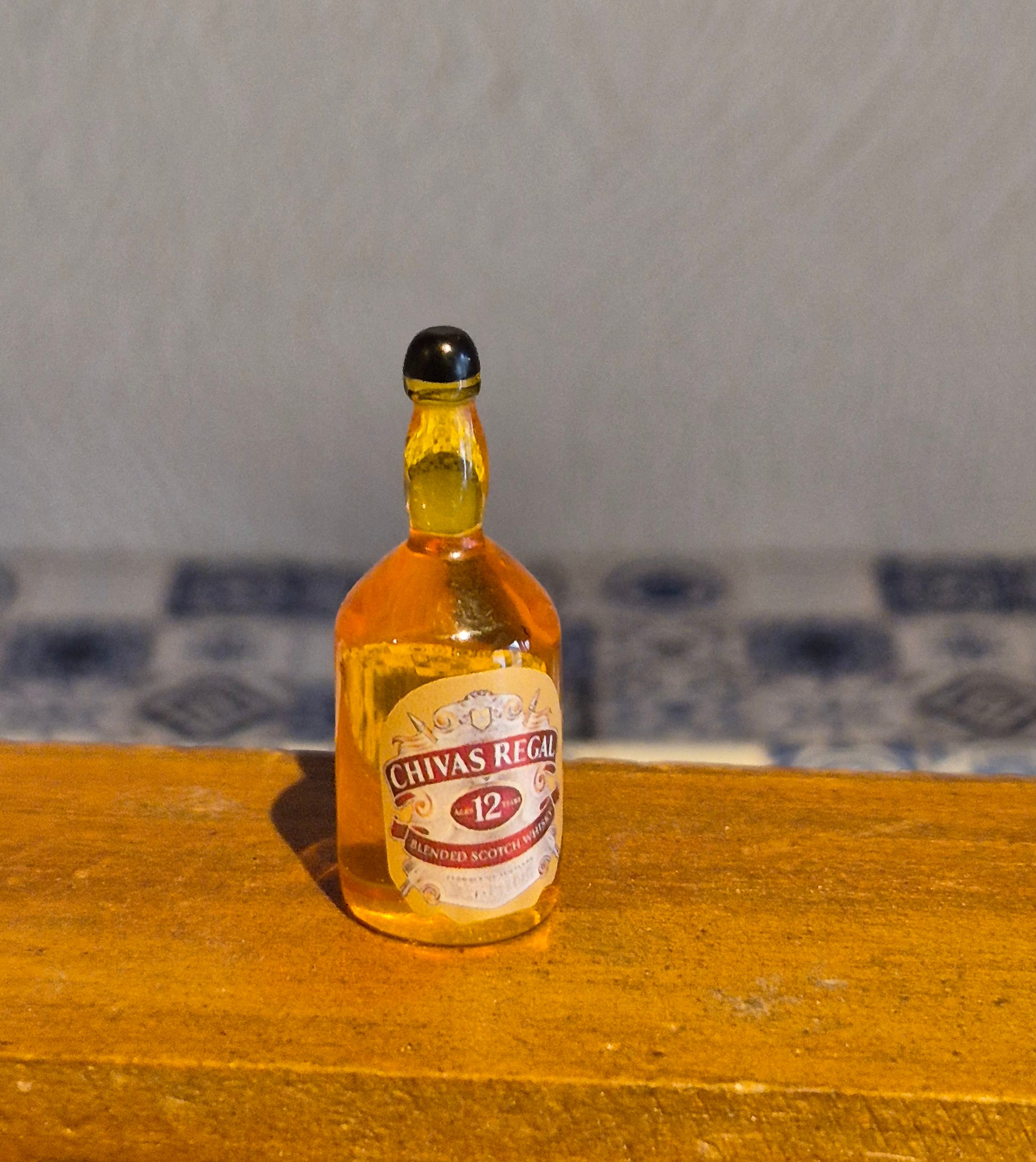 Pæn flaske til dukkehuset. Drikkevarer til 1:12.