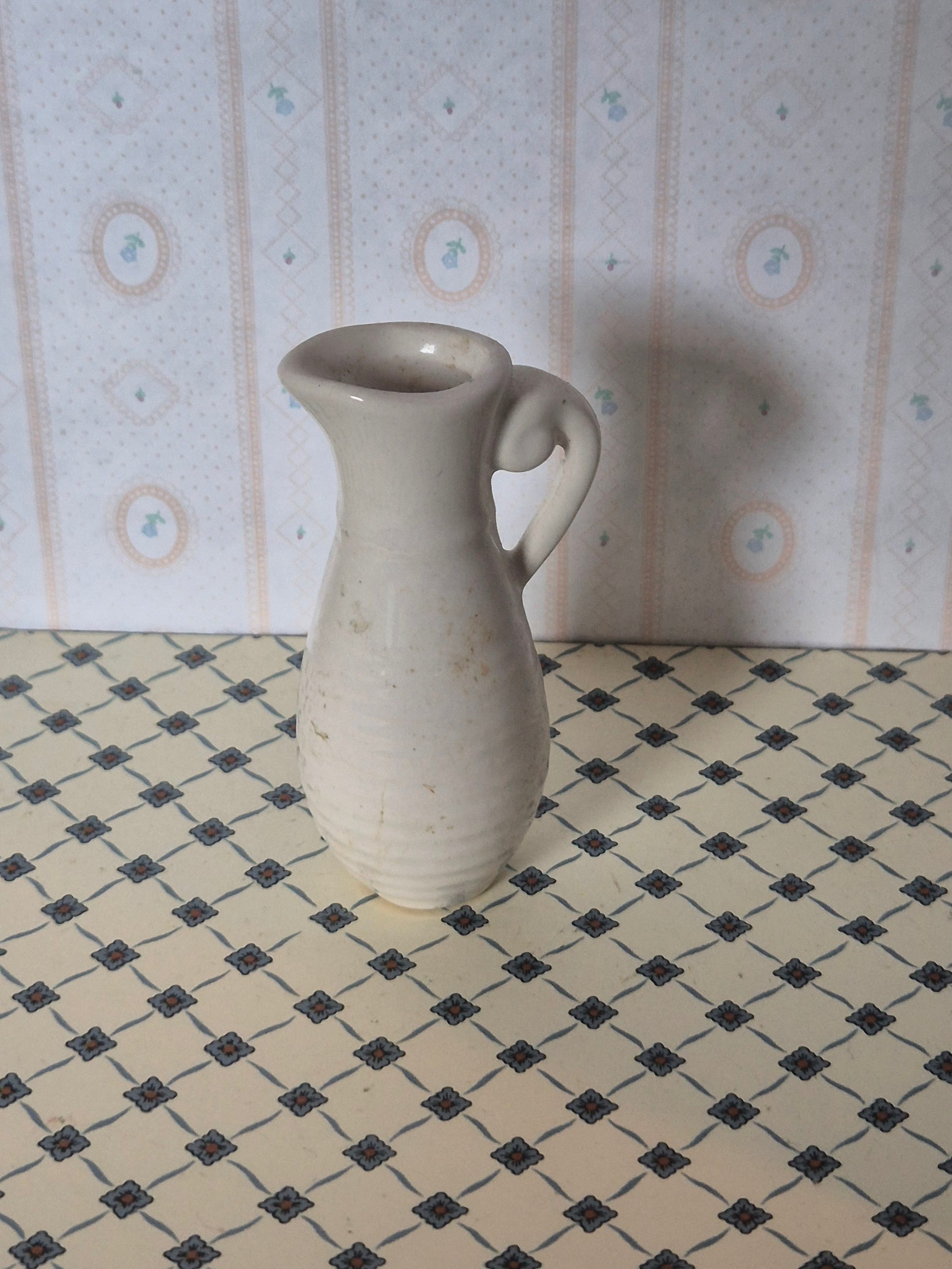 Høj råhvid gulvvase af lertøj / keramik, ca 7,4 cm høj.