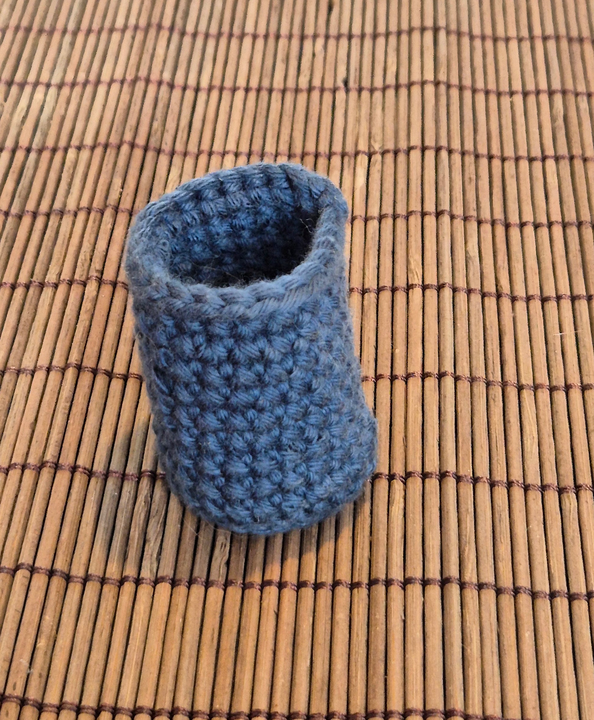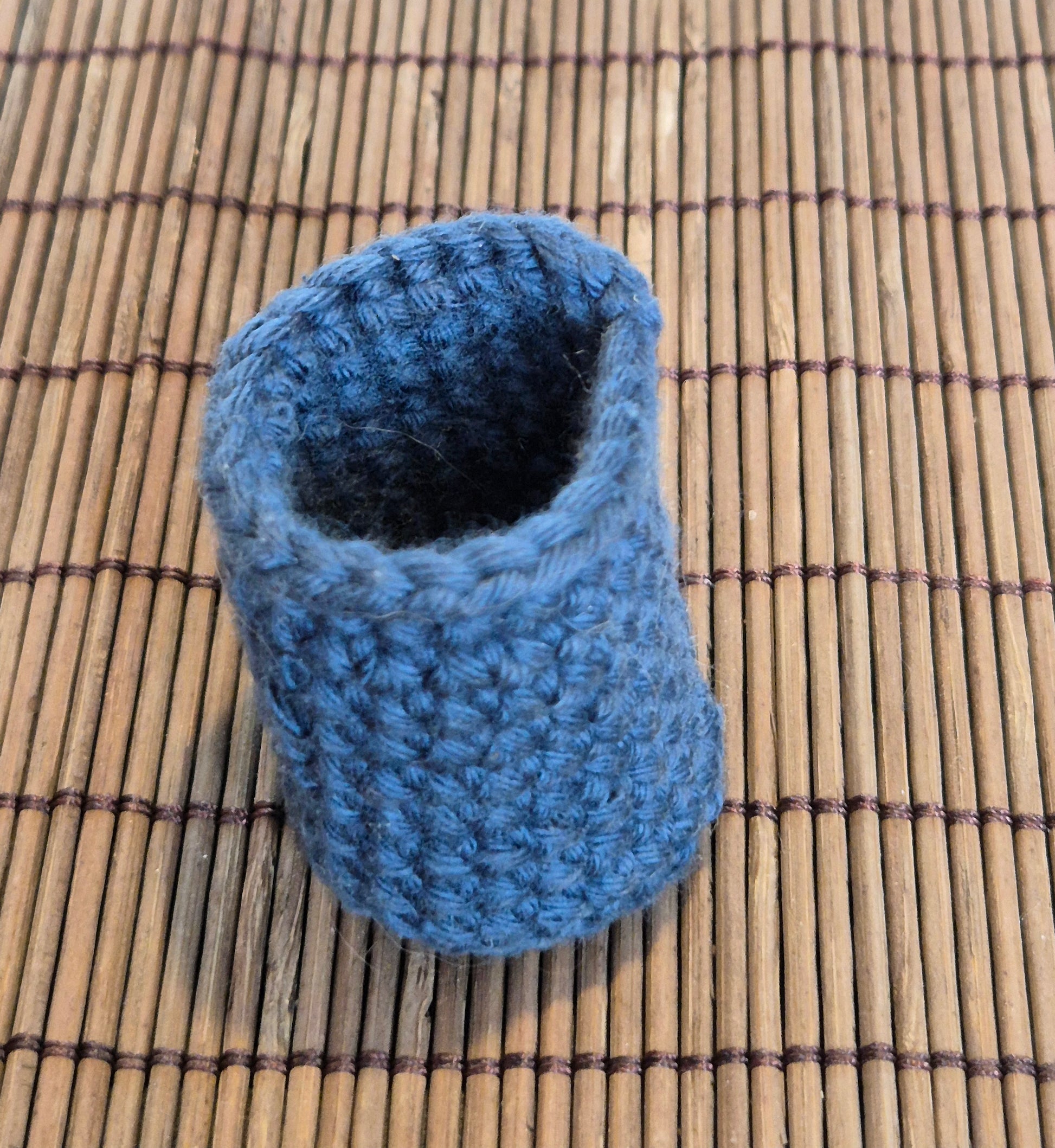 1:12 Hæklet vasketøjskurv i mørkeblå. Den er hjemmelavet af en privat person.