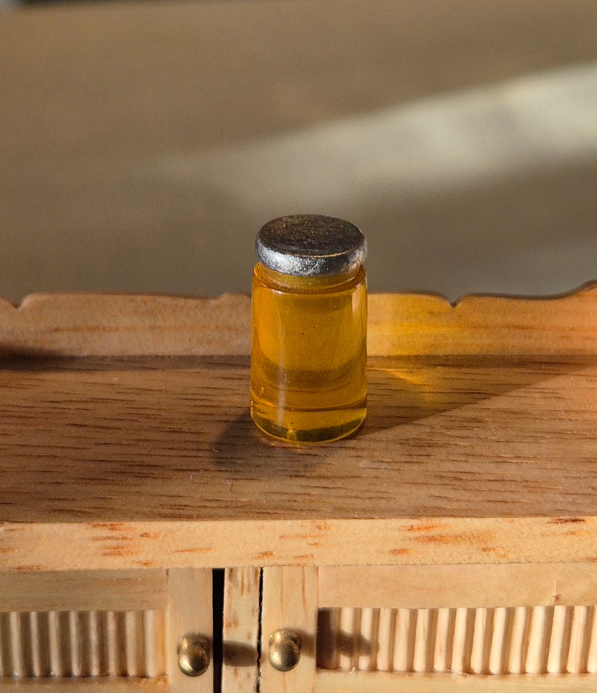 Stort Honningglas, lys og gyldent indhold til dukkehus køkkenet.