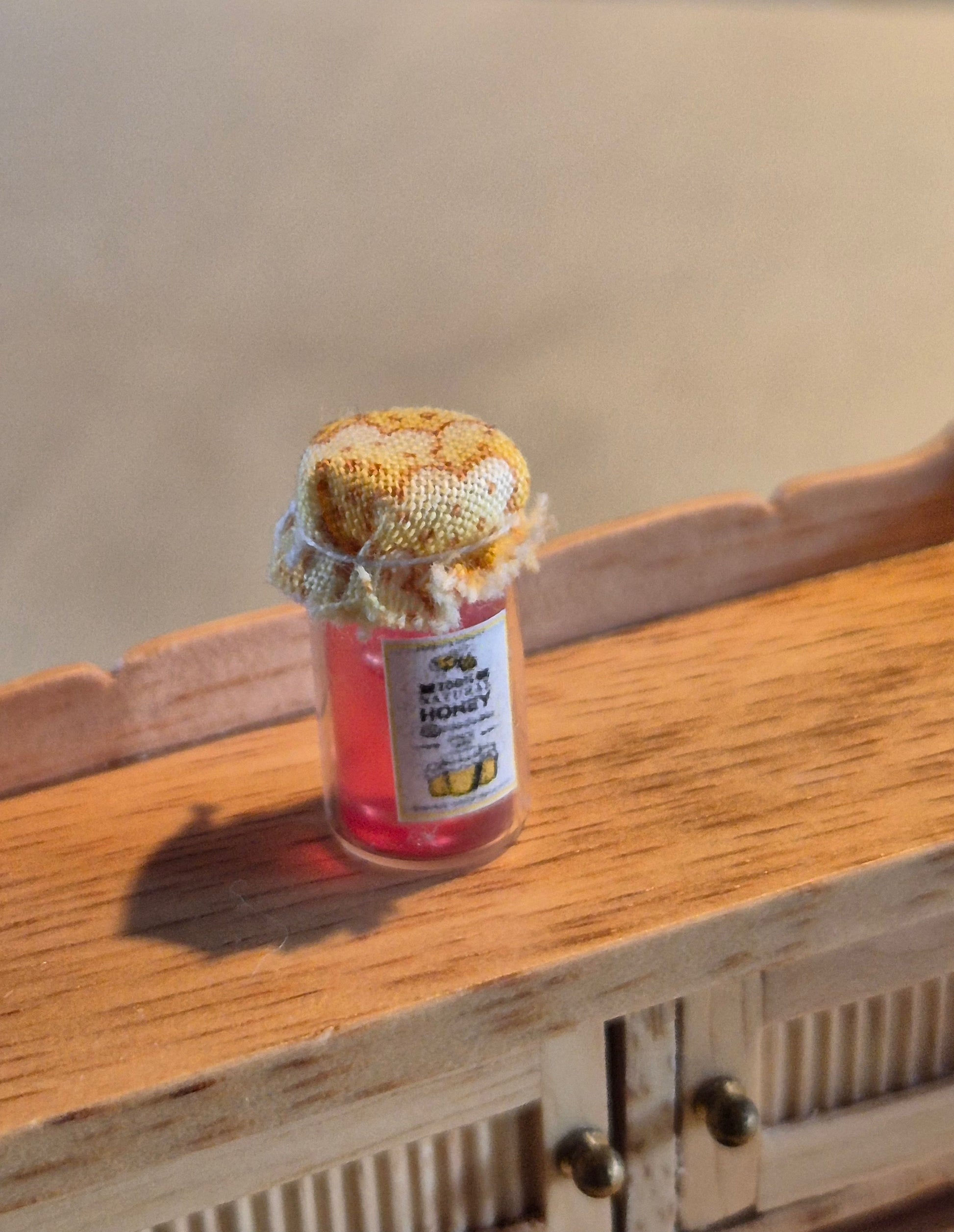 1:12 glaskrukke med honning, en anelse mørk fx lynghonning.