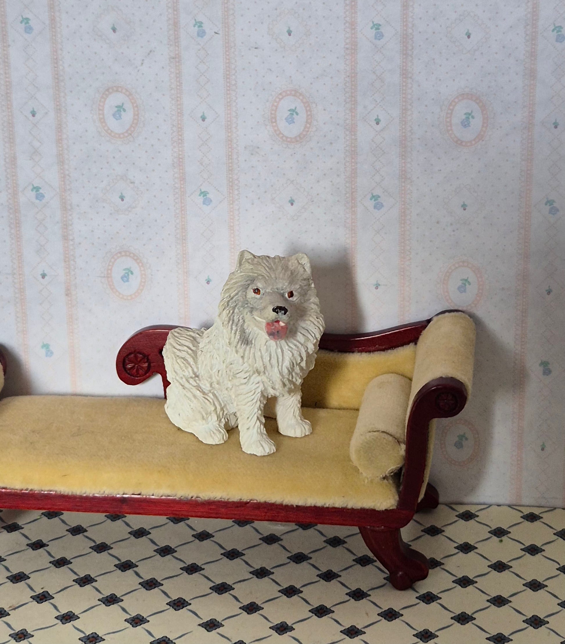 Pæn hund 1:12 af resin-materiale/keramik. Udmærket stand.