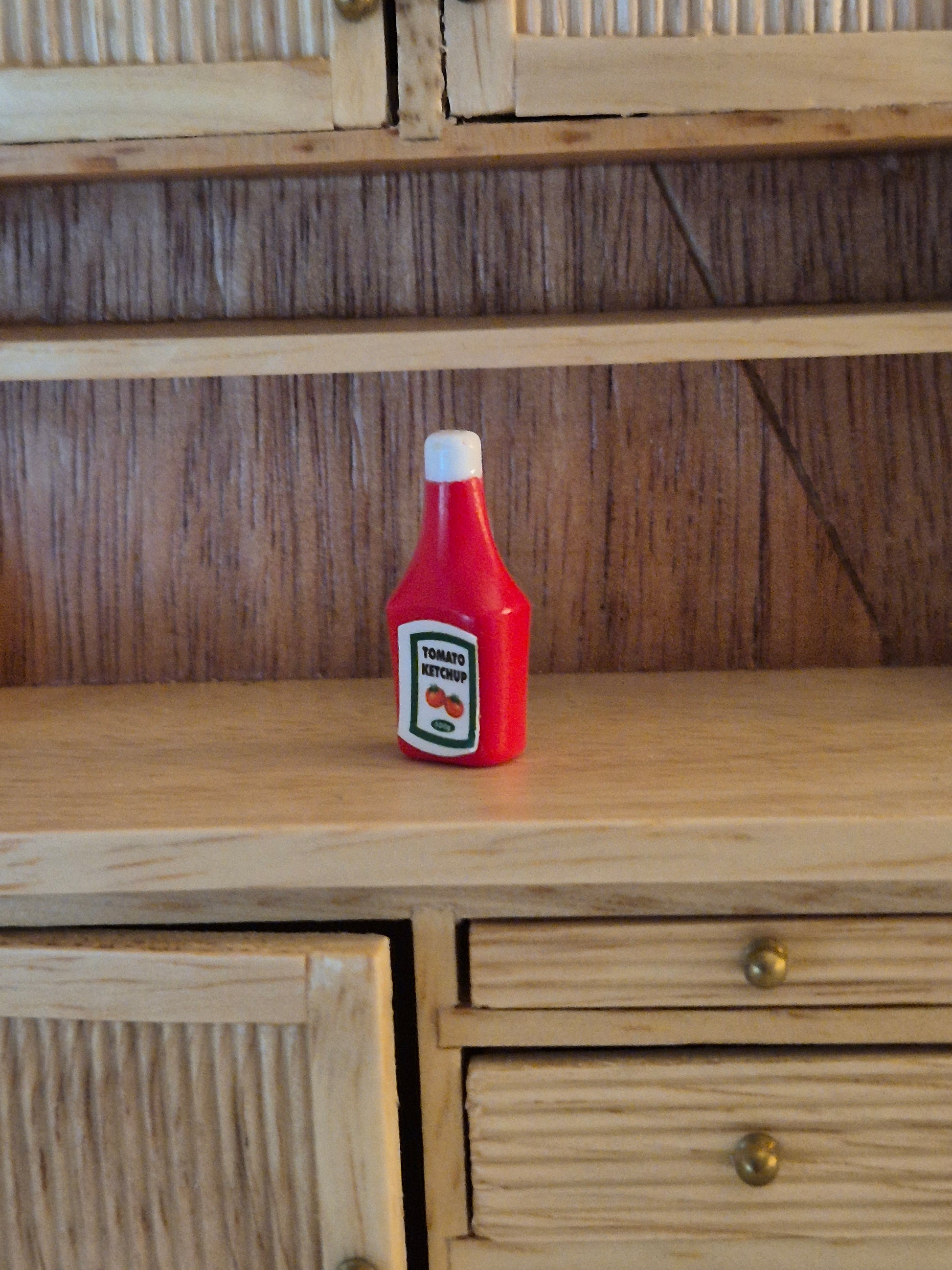 God flaske med ketchup str 1:12, men kan sagtens bruges til andre størrelser dukkehuse også.