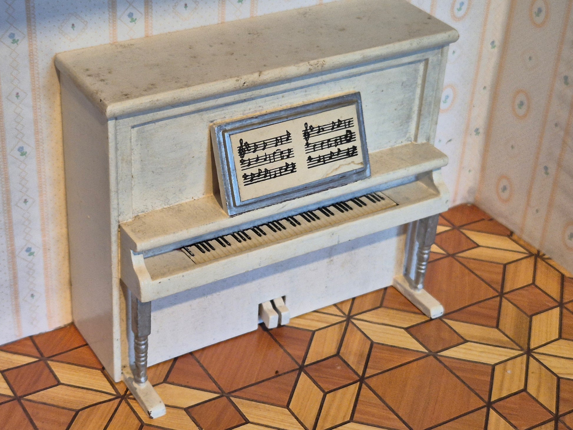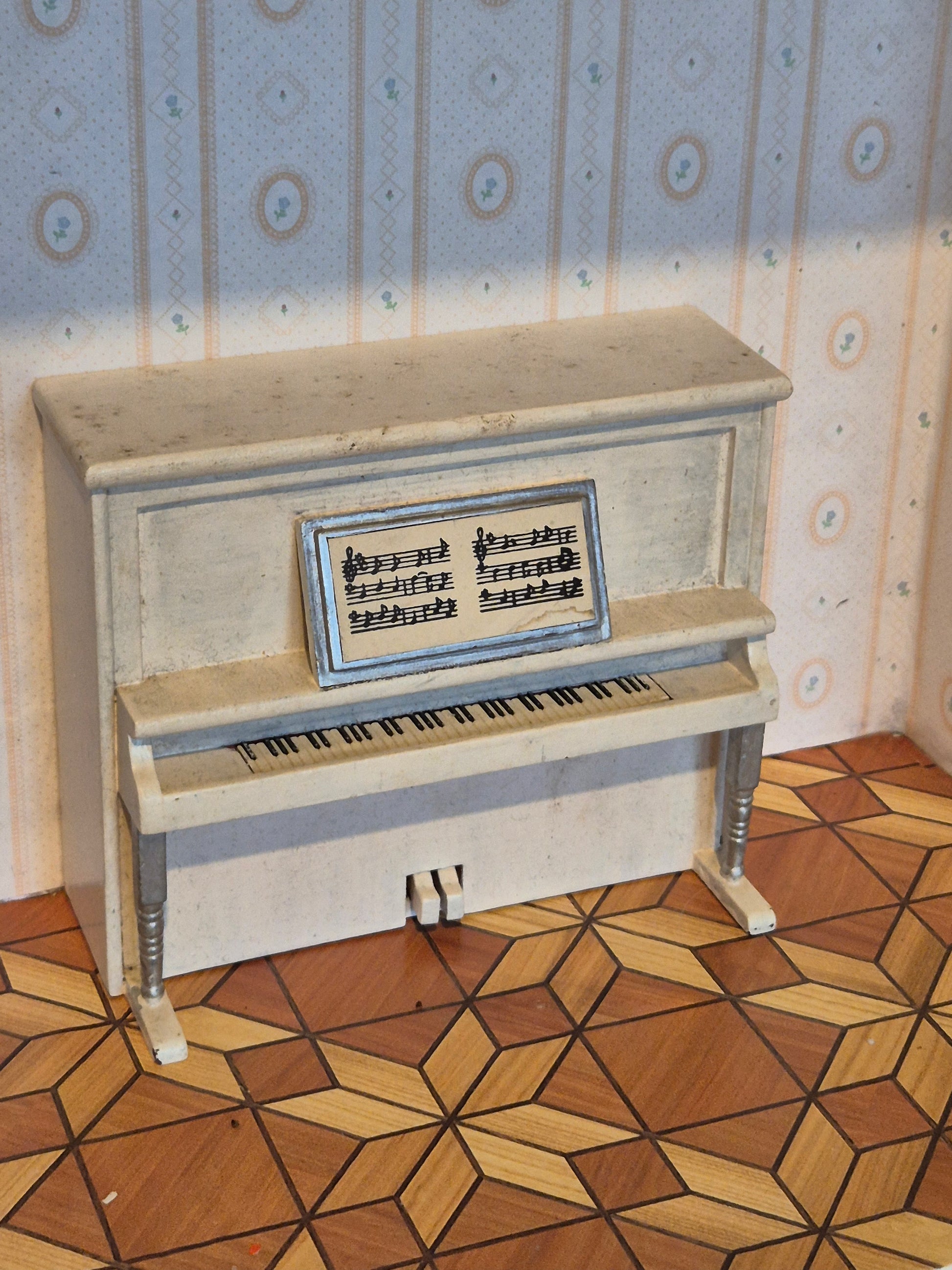 1:12 klaver, det er blevet malet hvidt, forsøgt at blive renoveret. Knap så pænt.