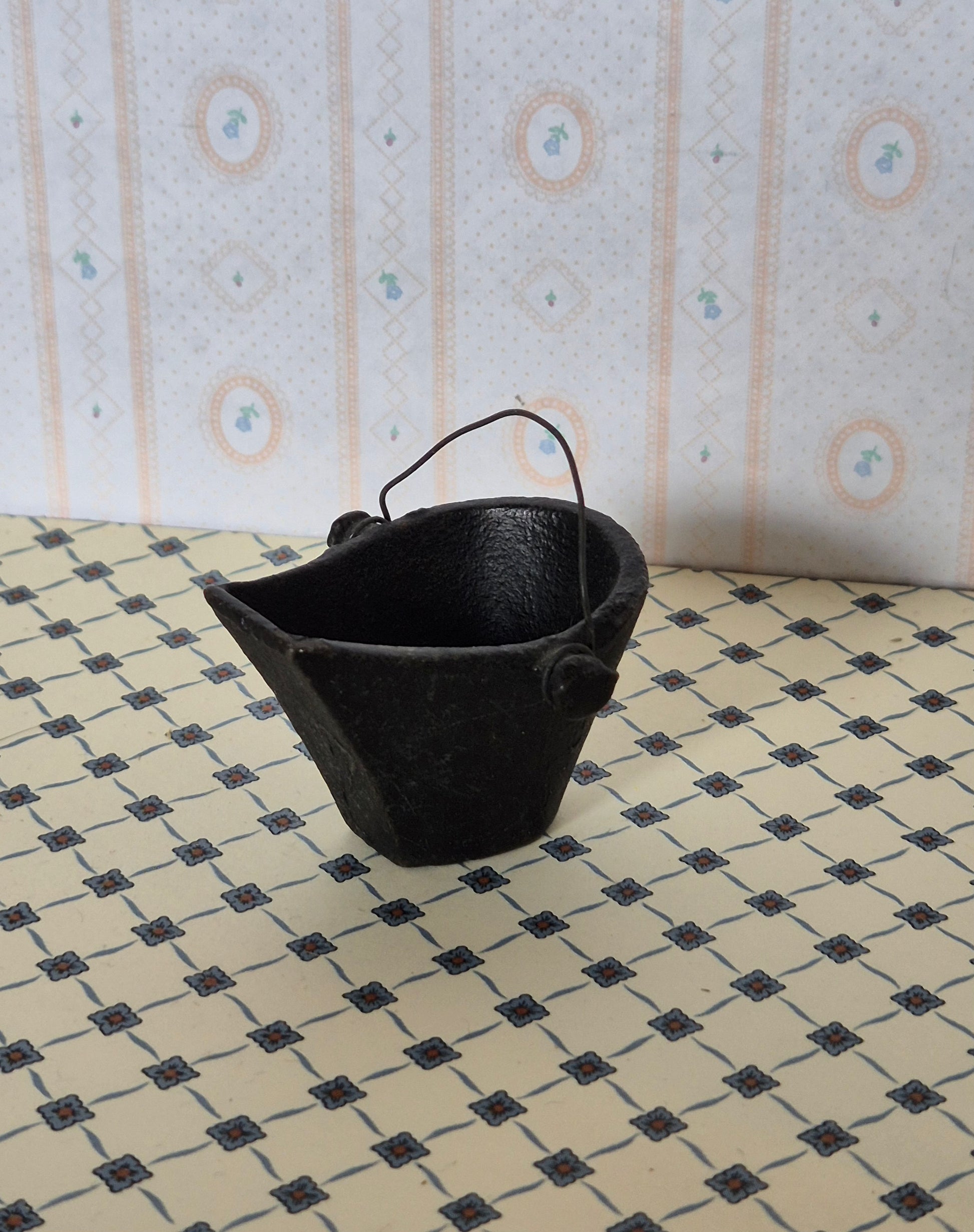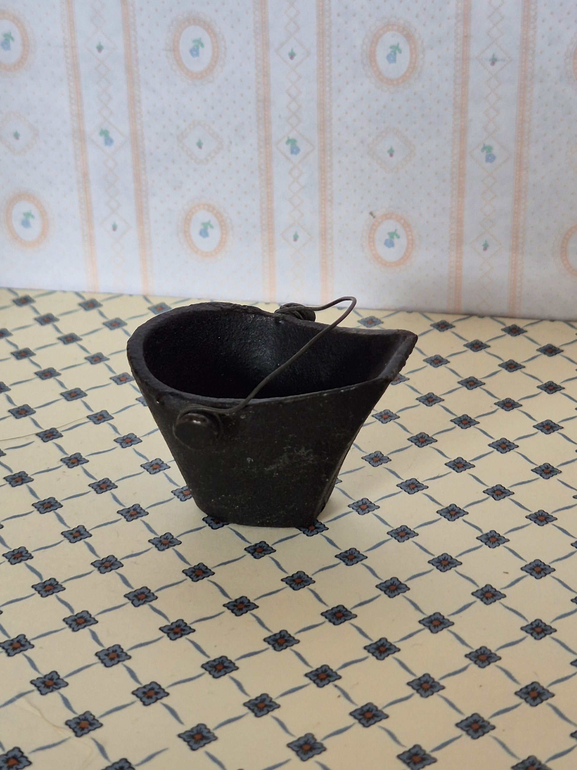 Sort støbejern kul spand 1:12 - 1:10. Den er tung, men pæn med meget patina, der giver ægtheds fornemmelse.