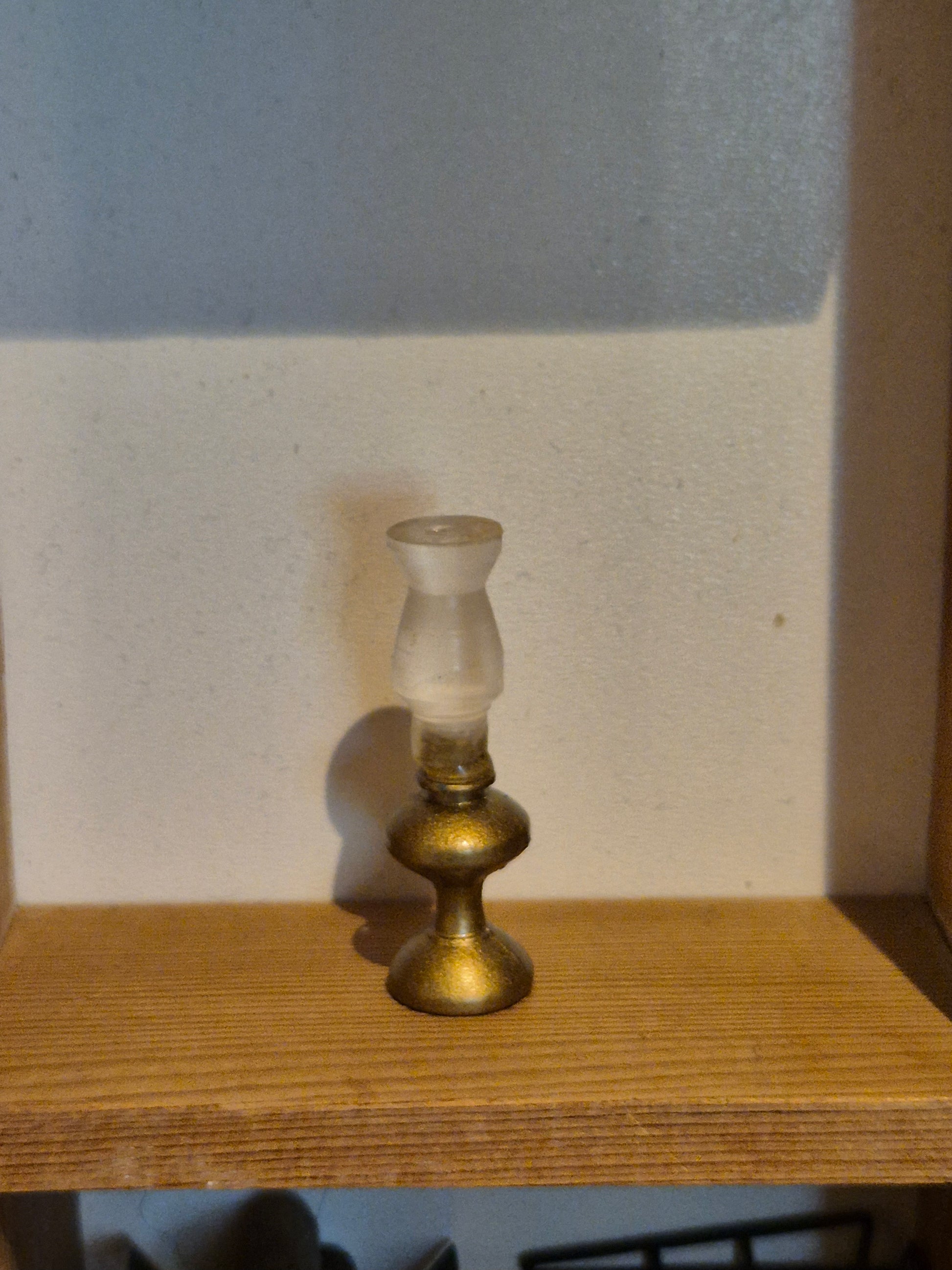 Fin lampe til 1:12 dukkehus. Den er fuldstøbt og kan ikke tilføjes lyspære eller lignende. Det er look-a-like lampe.