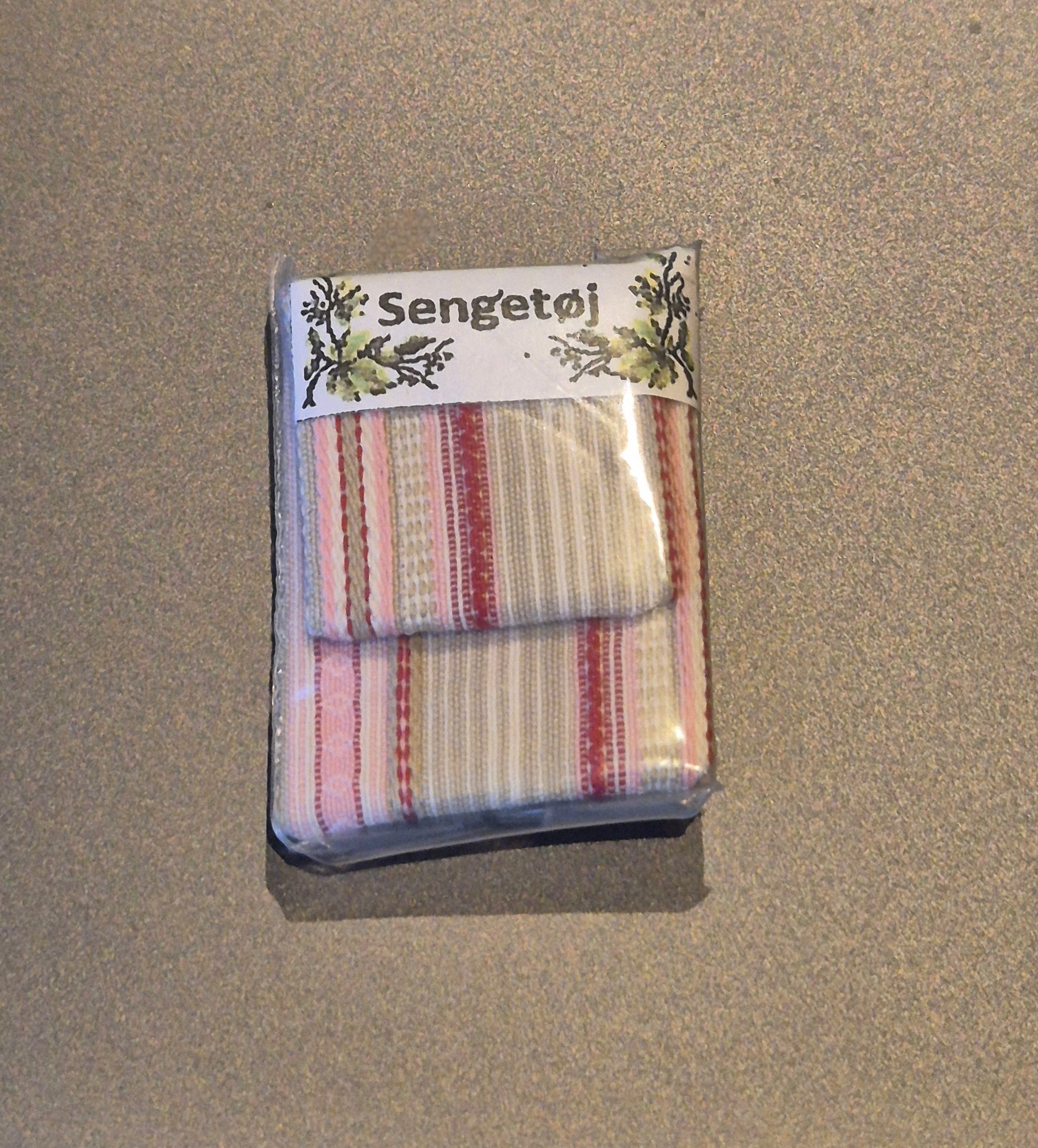 Fin pakke med stribet sæt linned og sengetøj til sengen. Sød og pæn.