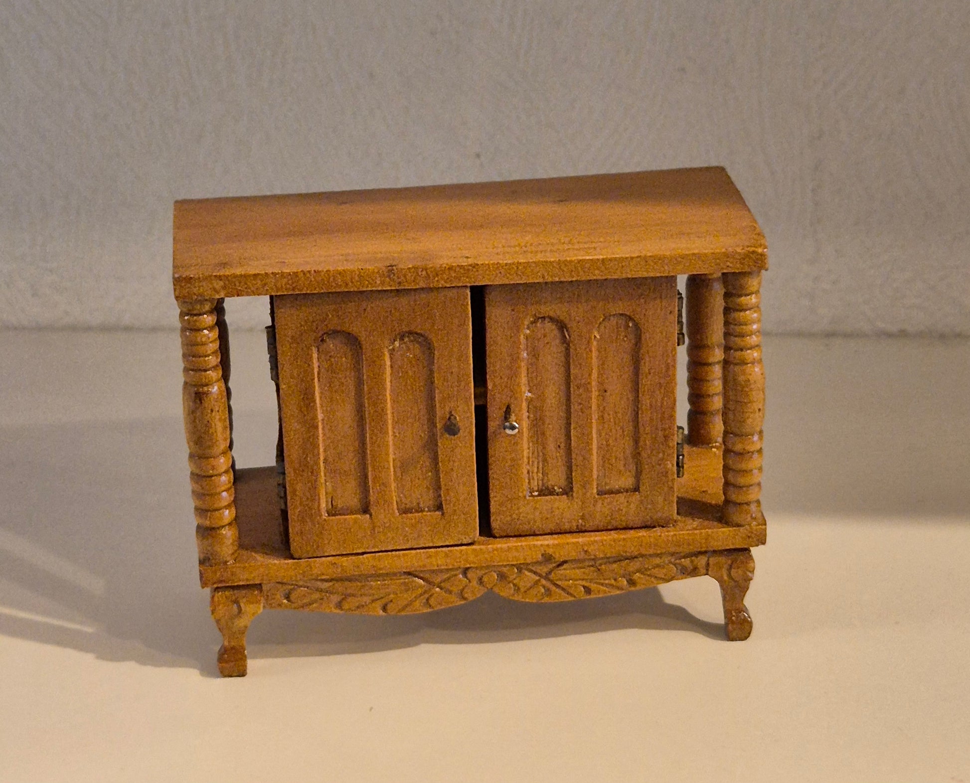 Pænt lyst lakeret skab til dukkehusets stue, bibliotek eller hall i str 1:12.