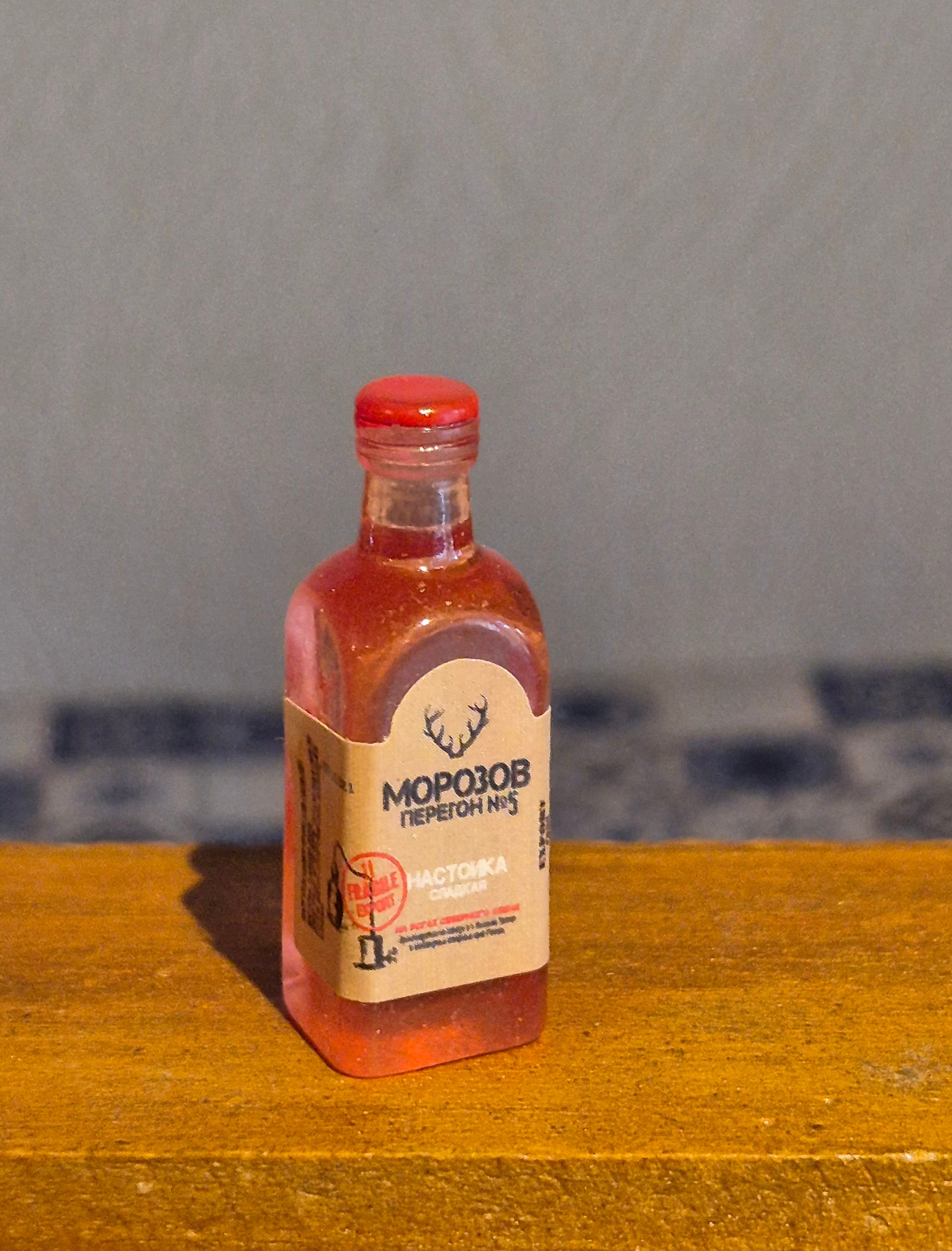 Pæn flaske til dukkehuset. Drikkevarer til 1:12.