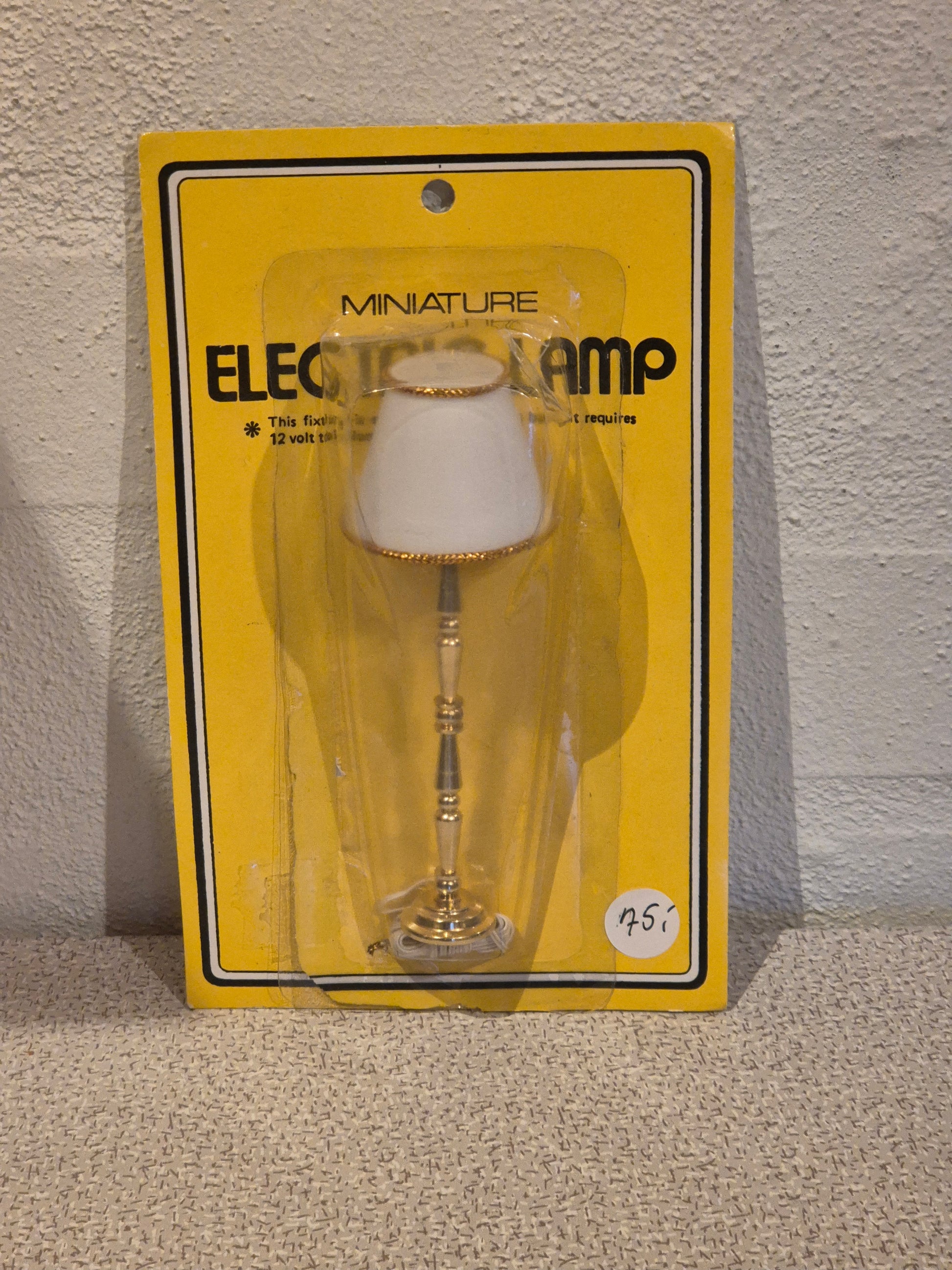 Ny 1:12 standerlampe, gulvlampe, til dukkehuset. Den er ny og i ubrudt emballage.