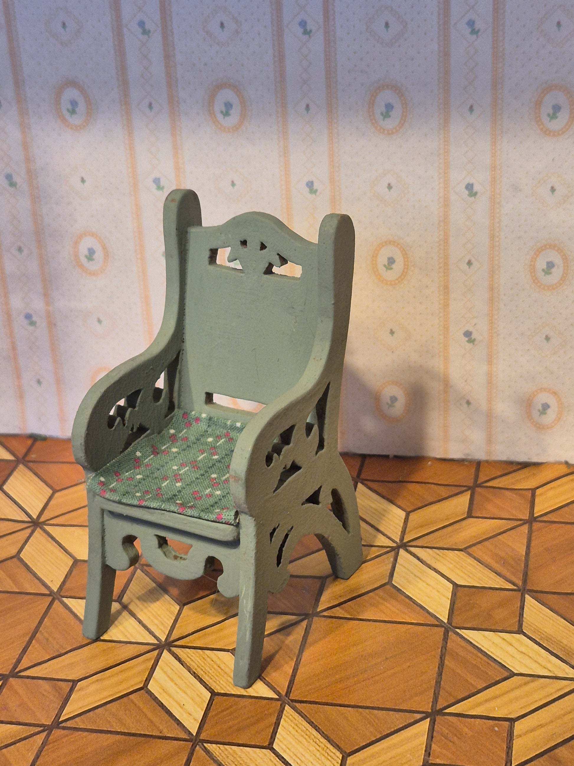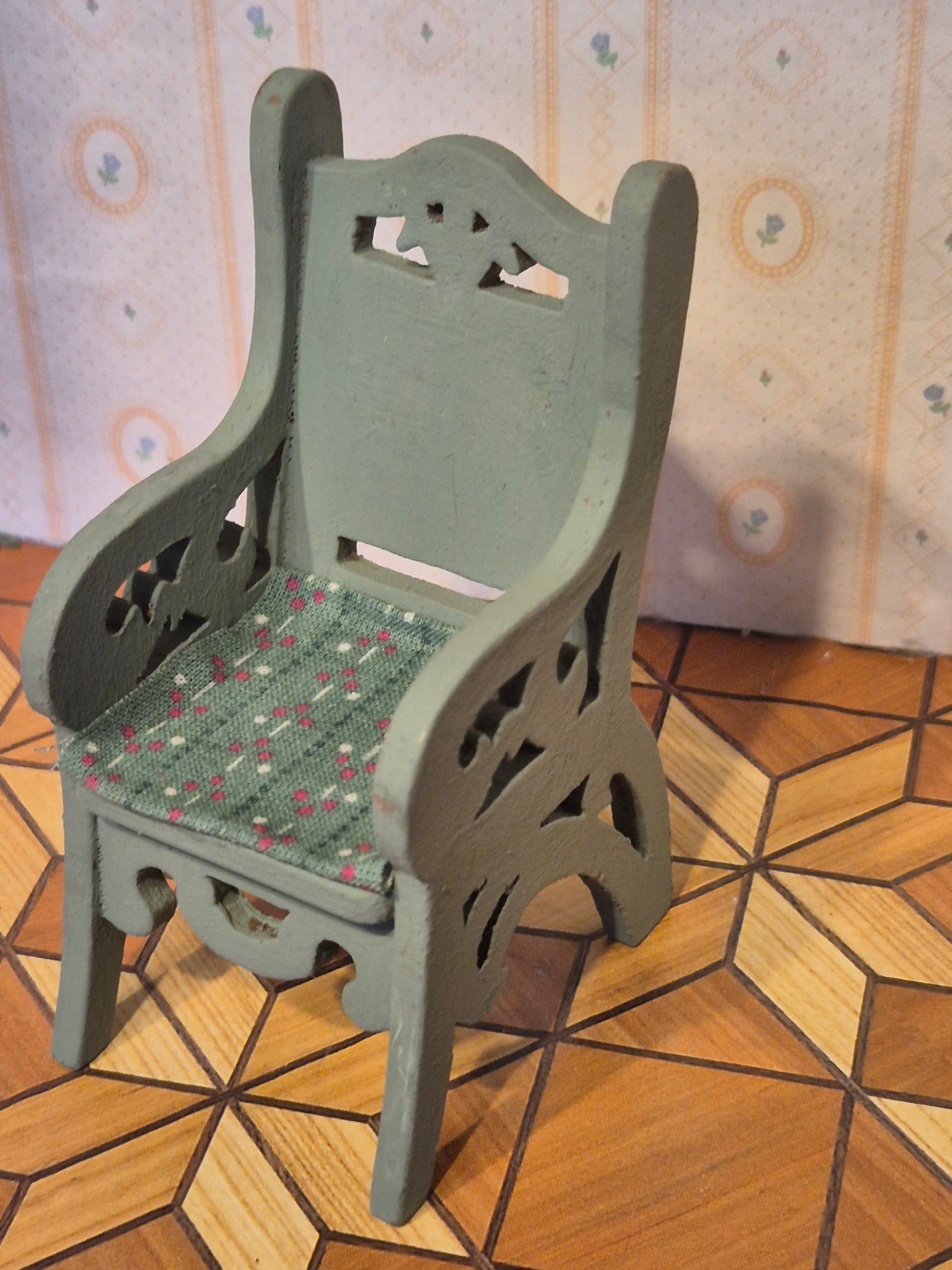 Den er renoveret og malet med grøn kalkmaling, der giver støvet tekstur og mat udtryk.