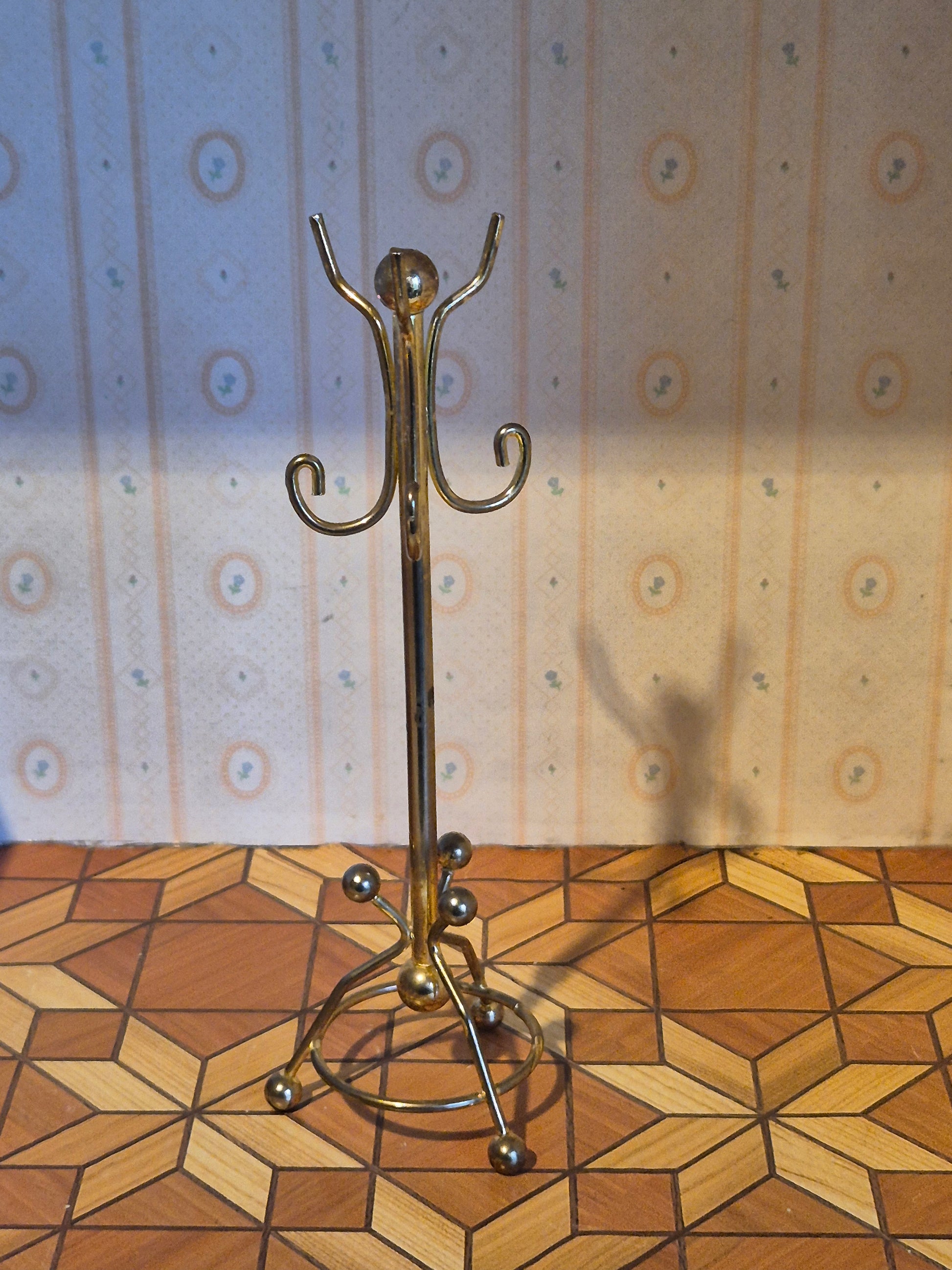1:12 metal stumtjener til ophæng af overtøj i dukkehuset. Pæn og fin. Messing.